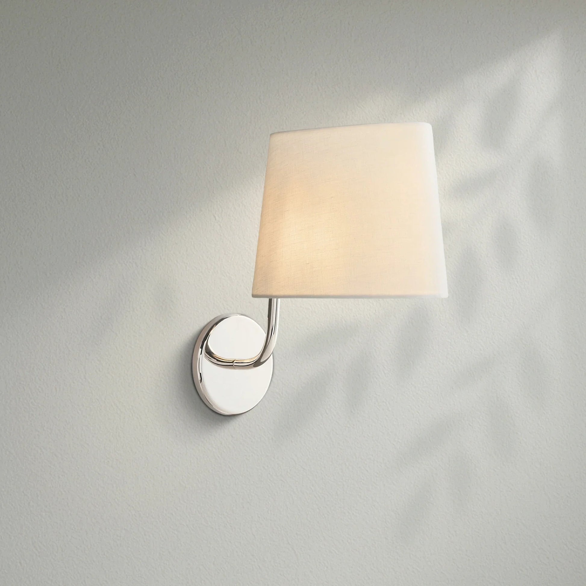 Designer looked to French designs of the 1940s and 50s for this lyrical collection, a minimalist meditation on form and function. Slender brass rods reminiscent of line drawings bend upward to showcase oval linen shades. The overall effect is one of restrained Classicism.