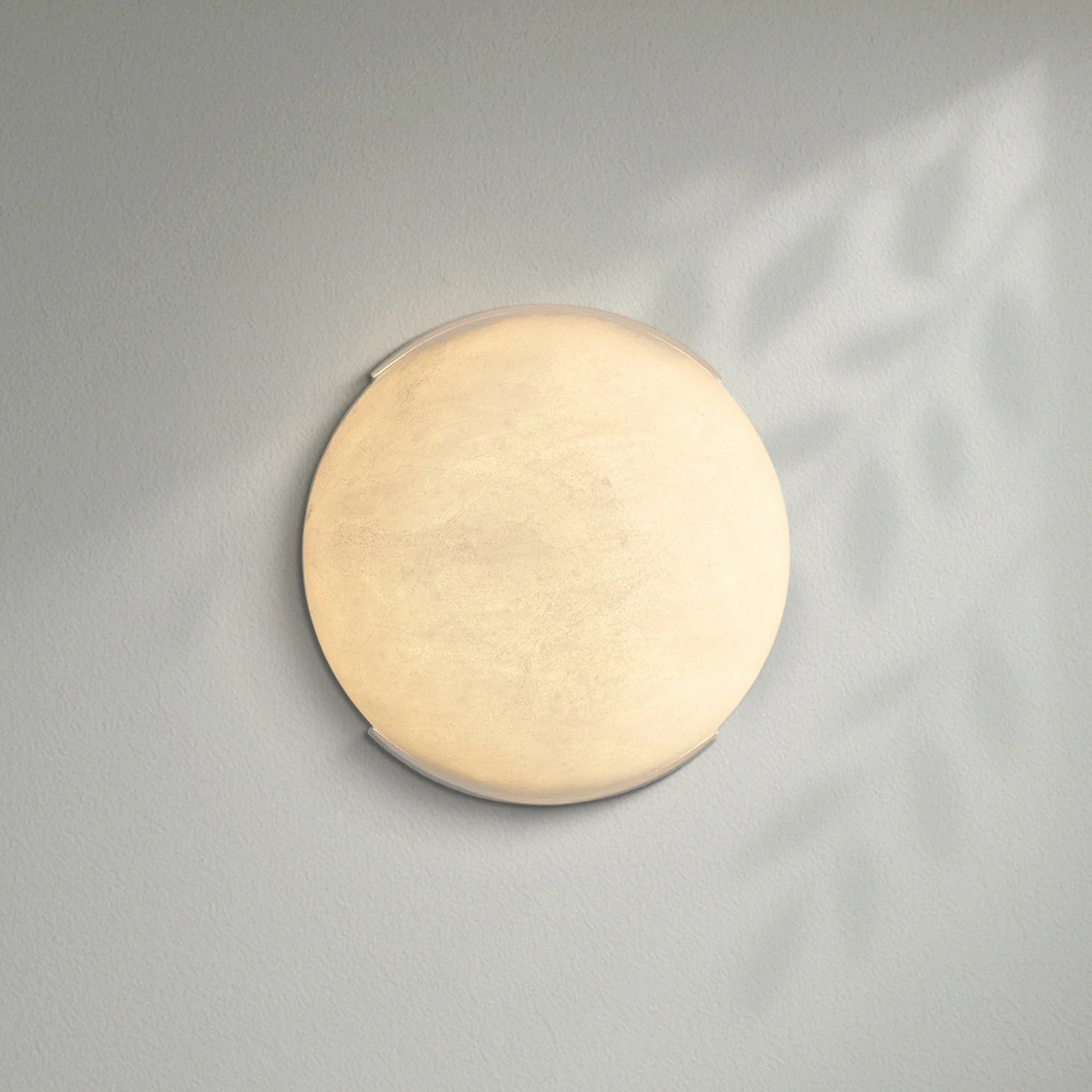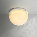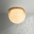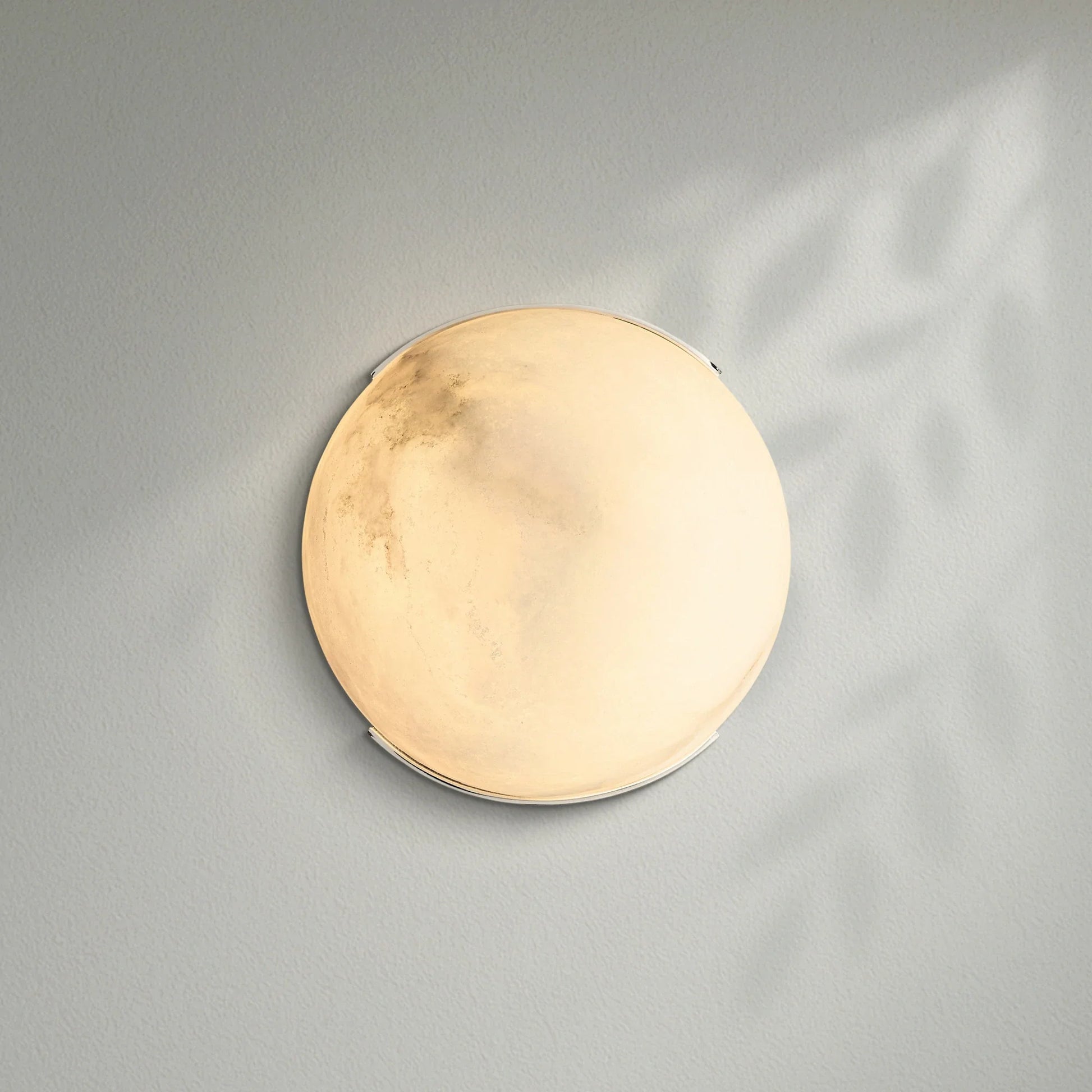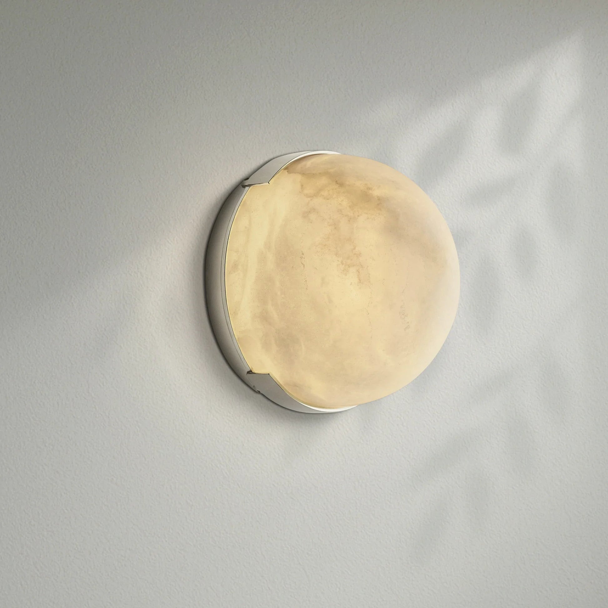 A round shade of richly figured alabaster lends a refined sensibility to our fixture, inspired by midcentury Italian design. Light delivers a warm glow as it passes through the translucent stone, supported by its restrained metal armature.