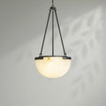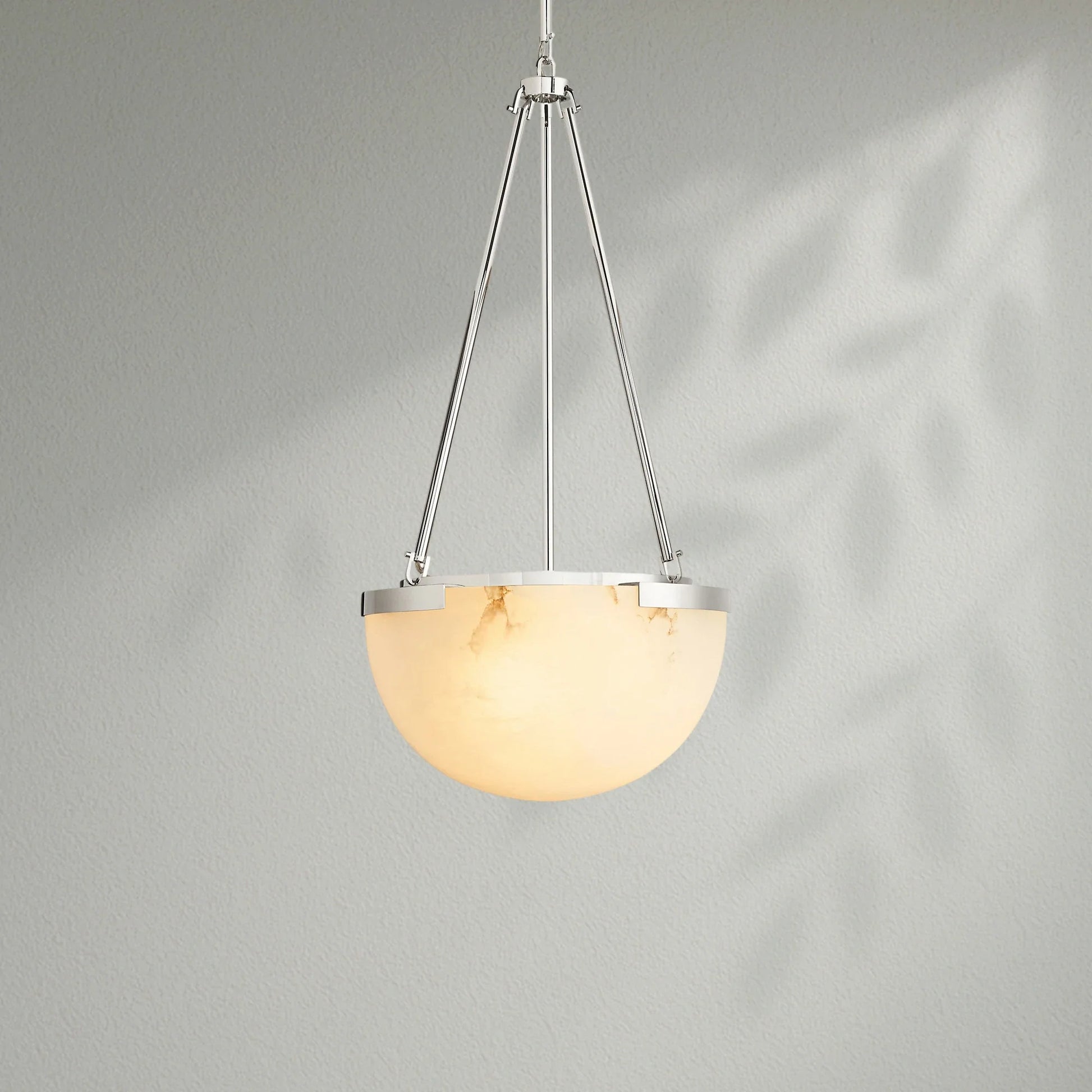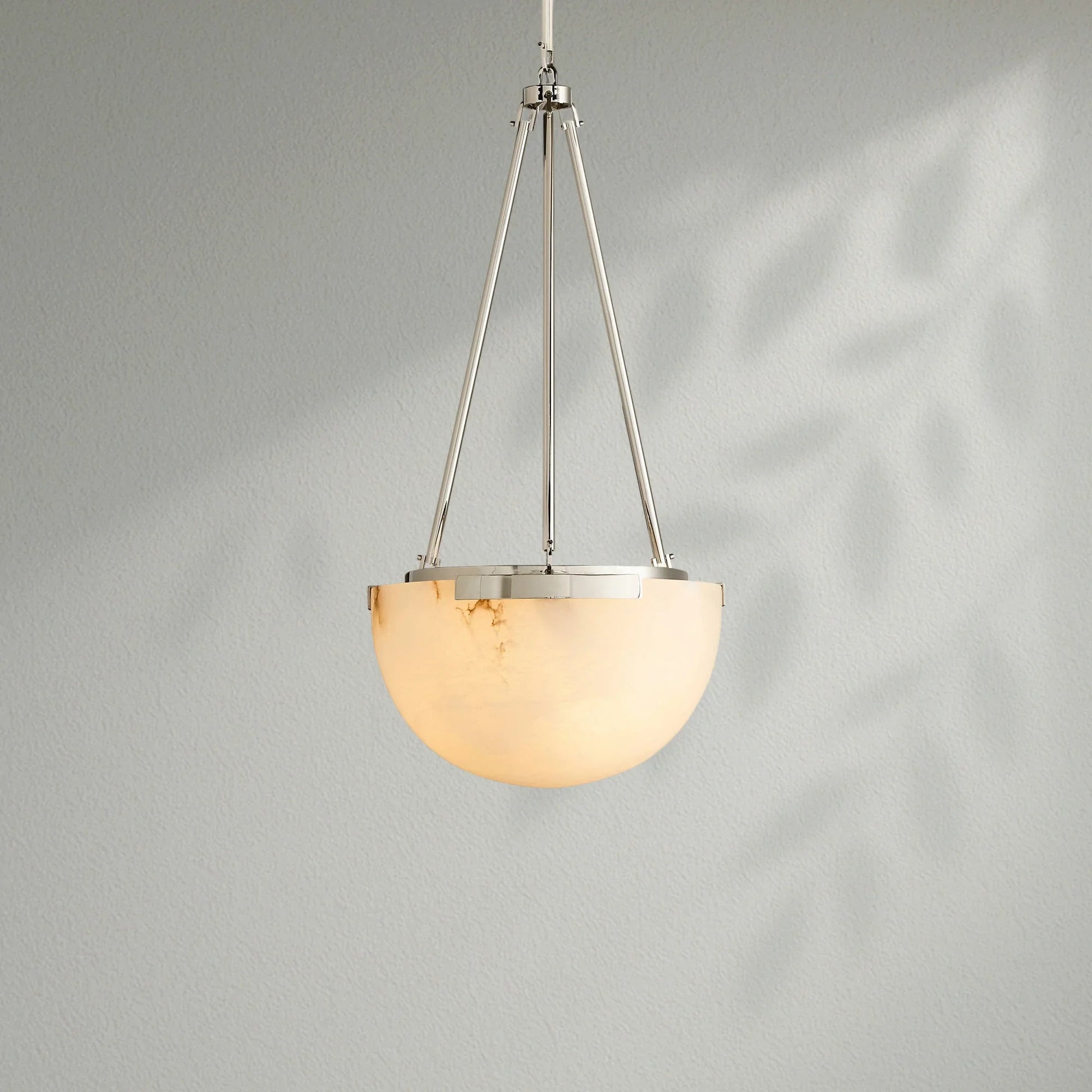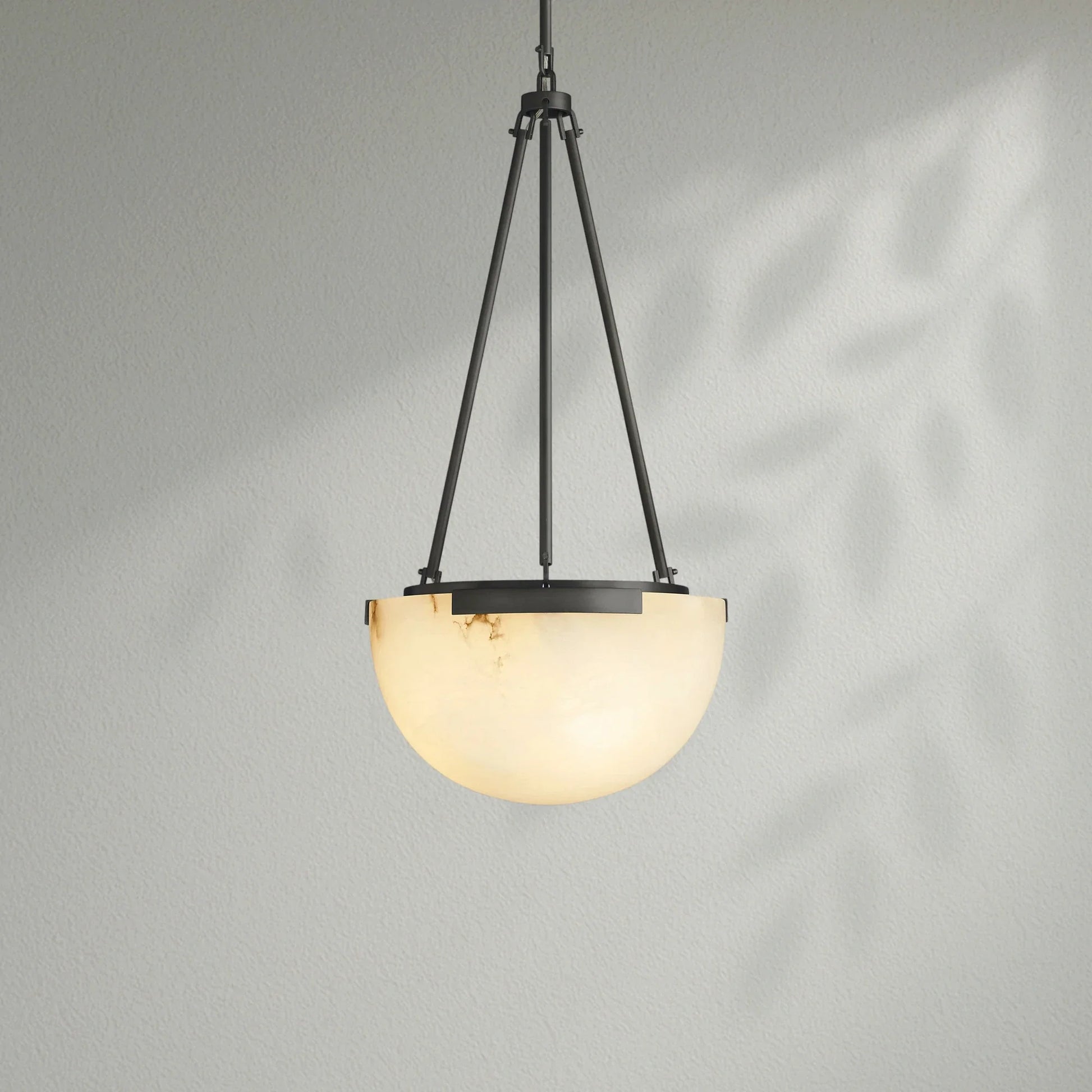 Half-dome shades of richly figured alabaster lend a refined sensibility to our collection, inspired by midcentury Italian design. A juxtaposition of geometric forms and luxe materials, the pendant's demisphere shade contrasts wit
