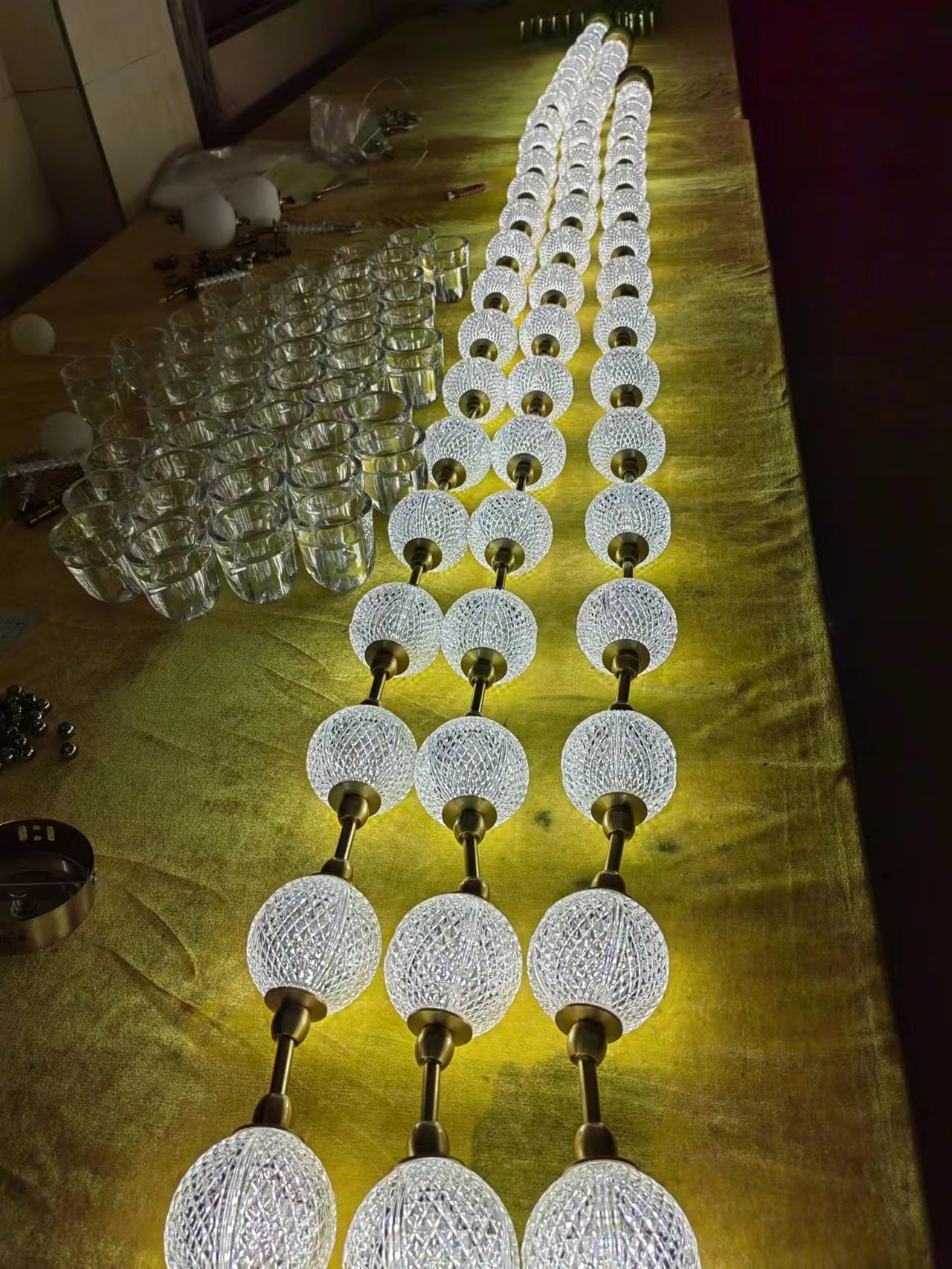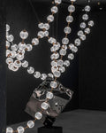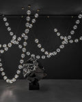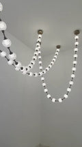 This necklace chandelier is made of hand-blown glass/acrylic, which gives it the bulk of the pearl necklace chandelier, with brass joints and LED lights hidden inside, the necklace chandelier offers multiple hanging possibilities: hanging from one or both ends, Connect multiple necklaces to each other, or just place them on a piece of furniture.