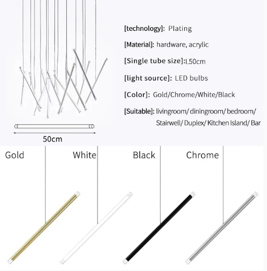 Modern light luxury creative lines long chandelier is not your favorite type? This modern chandelier uses a variety of colors of the line tube grouped together, with a round or rectangular chassis, forming a simple and textured lamps, this lamp can not only develop their own size of the plate, but also you can specify the color you want to combine together to form their own unique style, we provide the body of the lamp colors: chrome, gold, black, rose, brown, white. This lamp is also particularly suitable for decorating the hotel lobby or coffee shop, bar, restaurant, etc., look up is a sense of art lamps, will make your guests surprised!