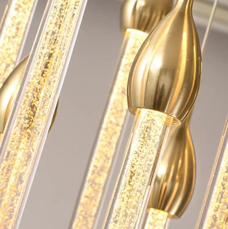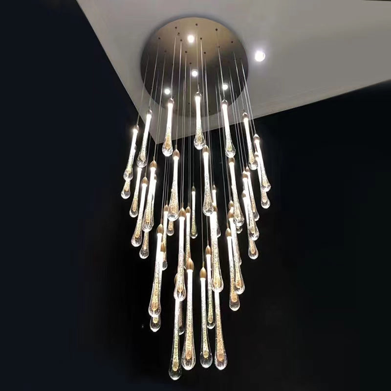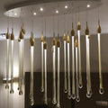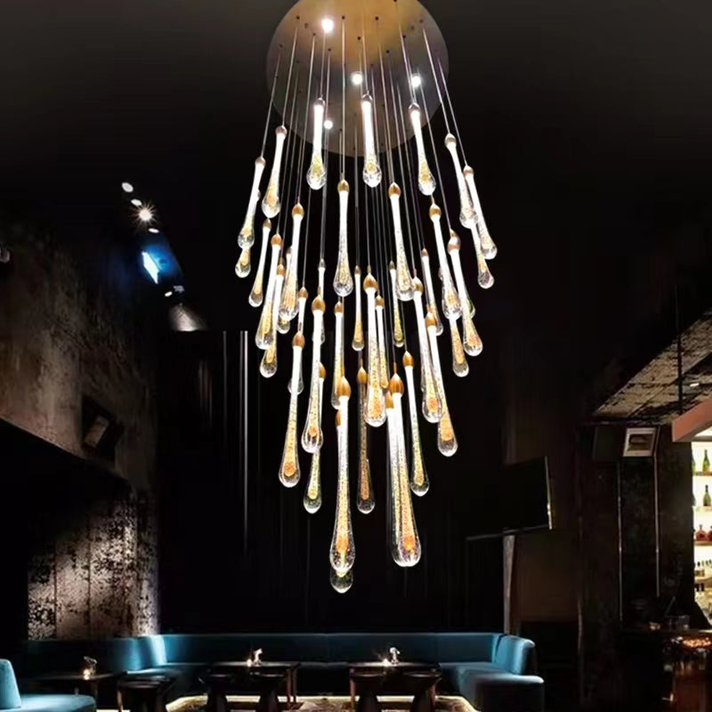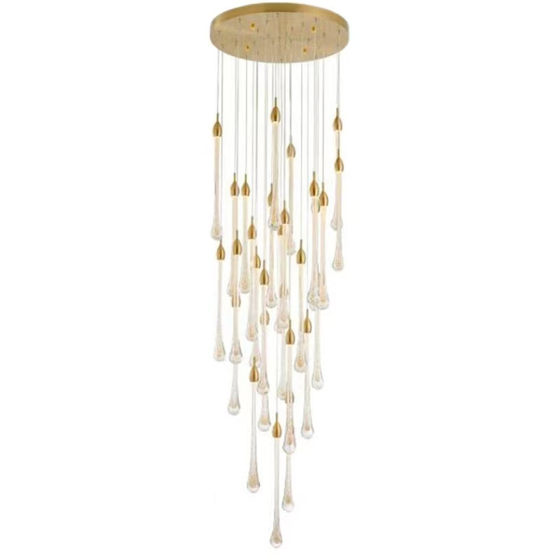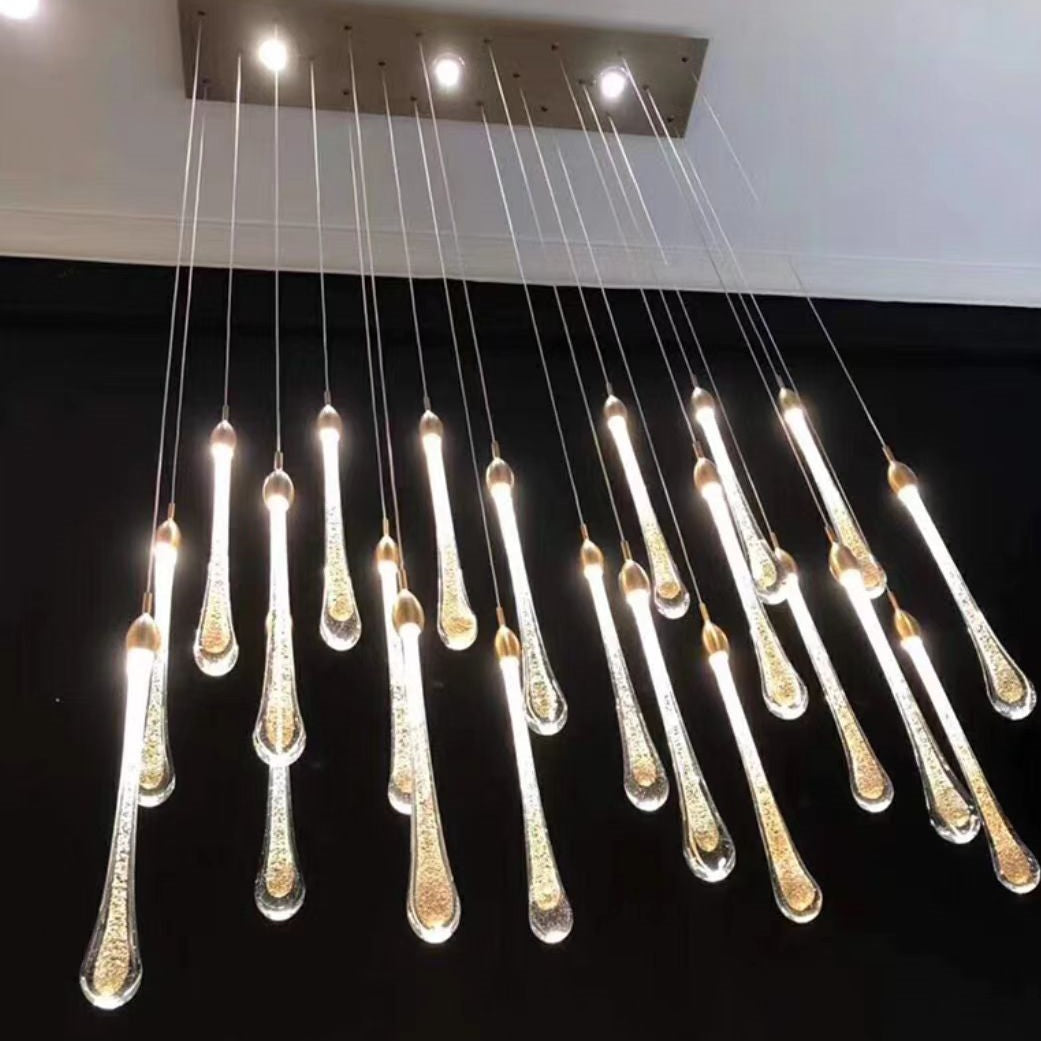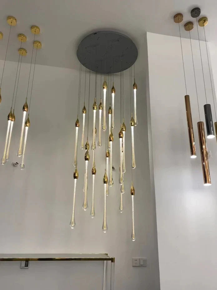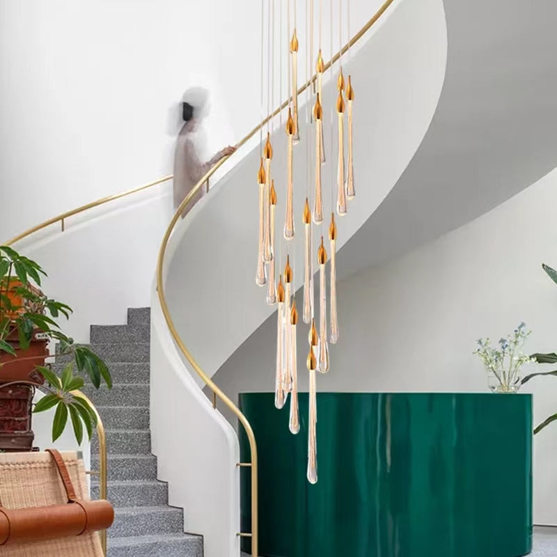 Modern Long Gold Glass Rain Rod Pendant Light for Staircase/High-ceiling room
