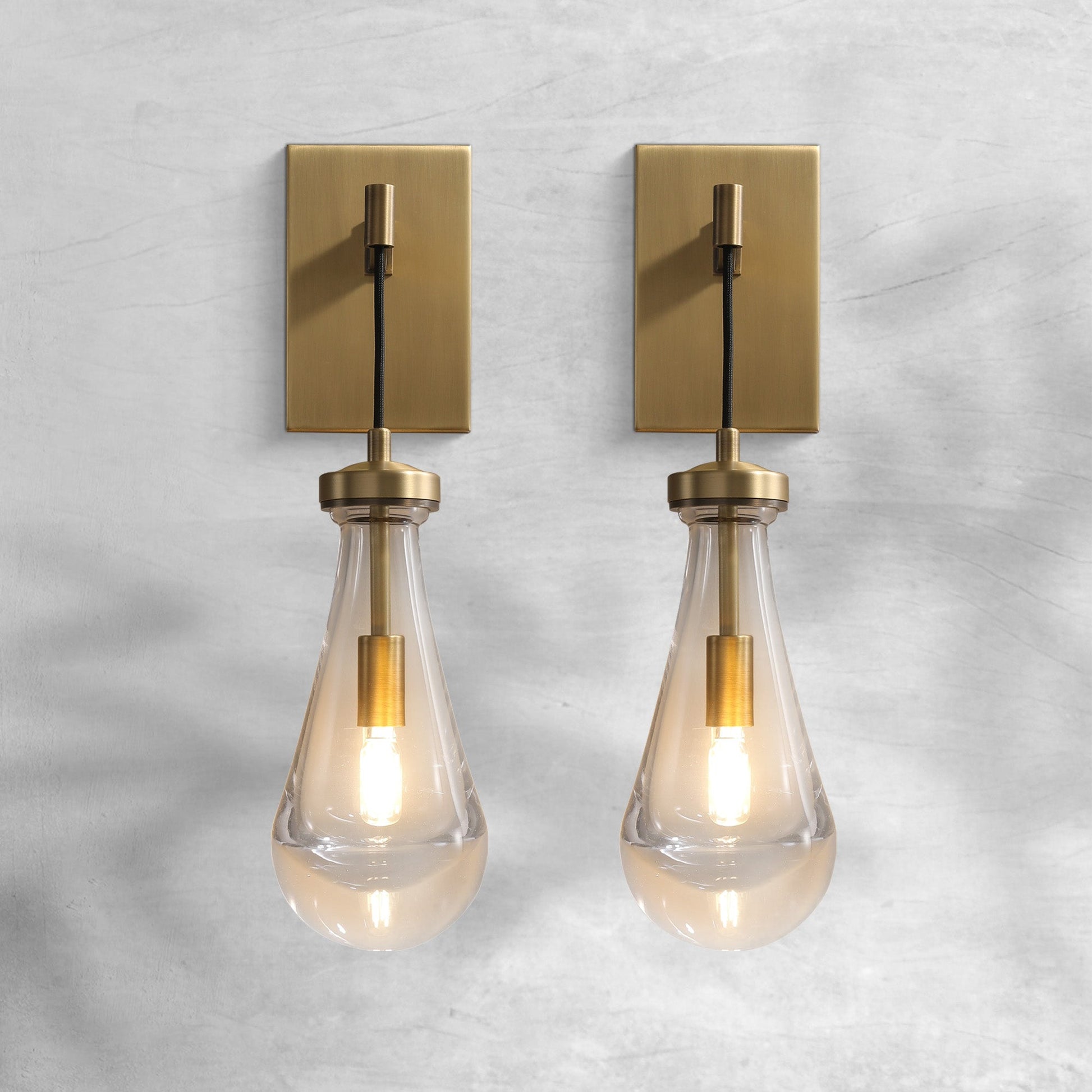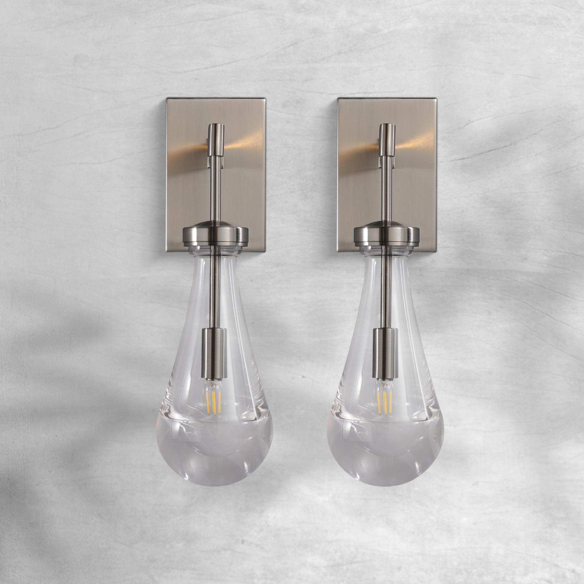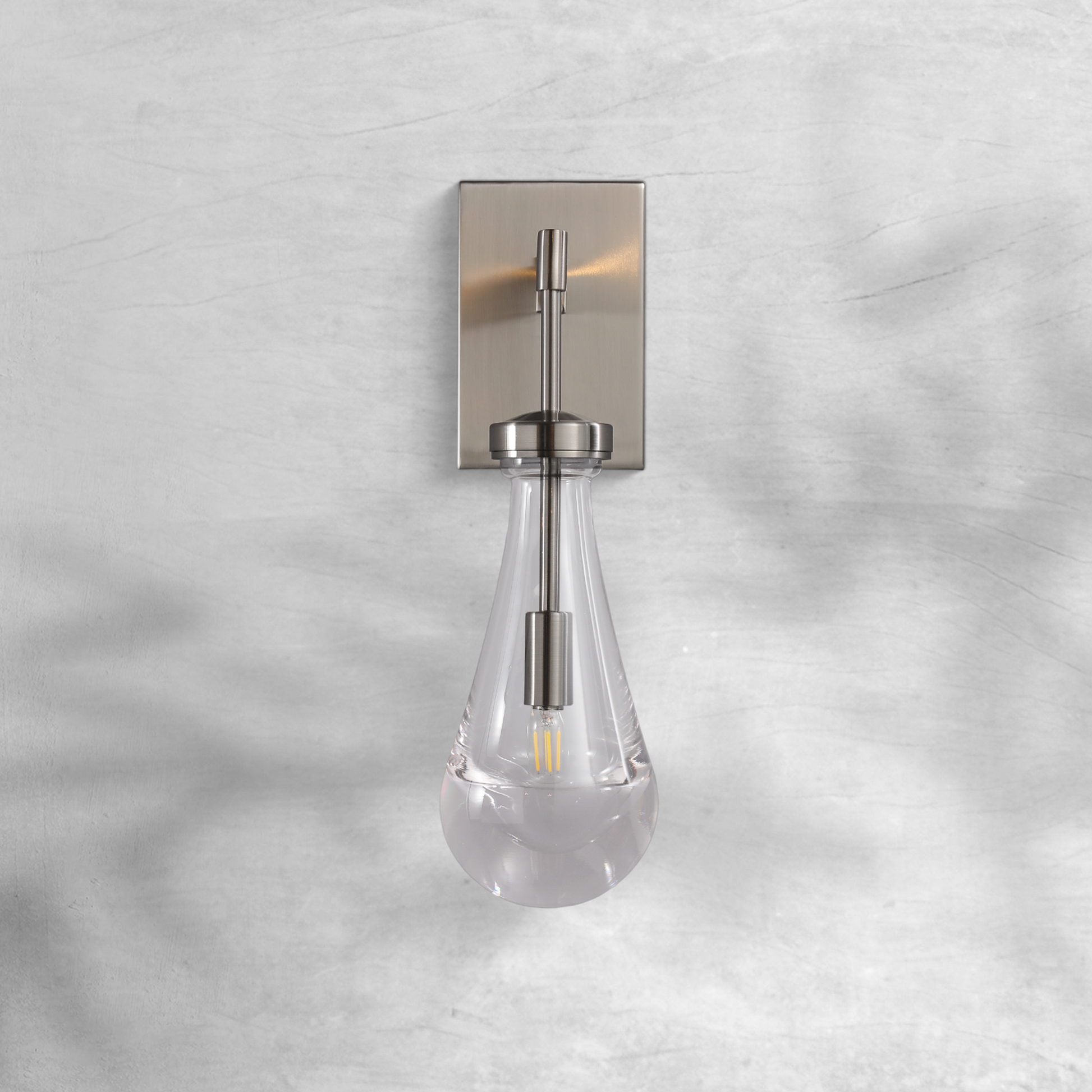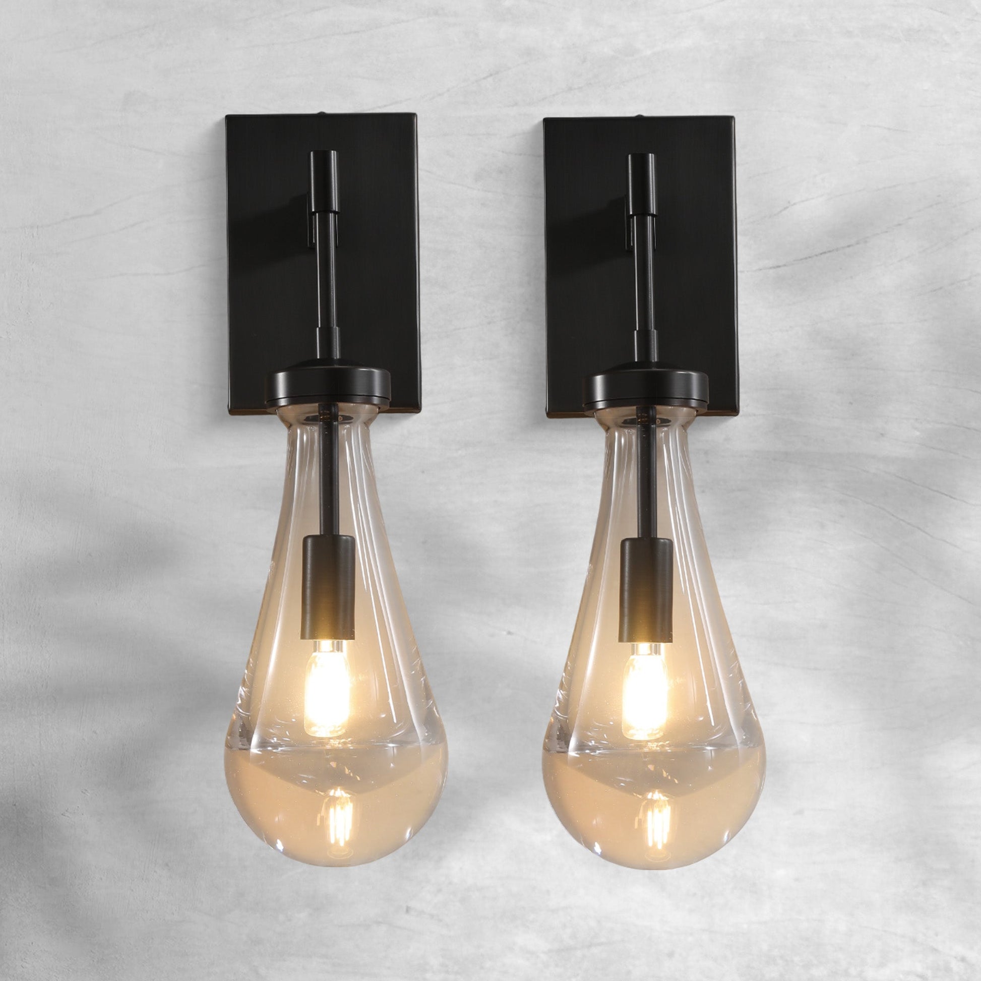 - 【Unique Design】Raindrop-shaped transparent glass lampshade, combining modern and natural beauty. This wall sconce fits perfectly with any style, from modern to rustic.