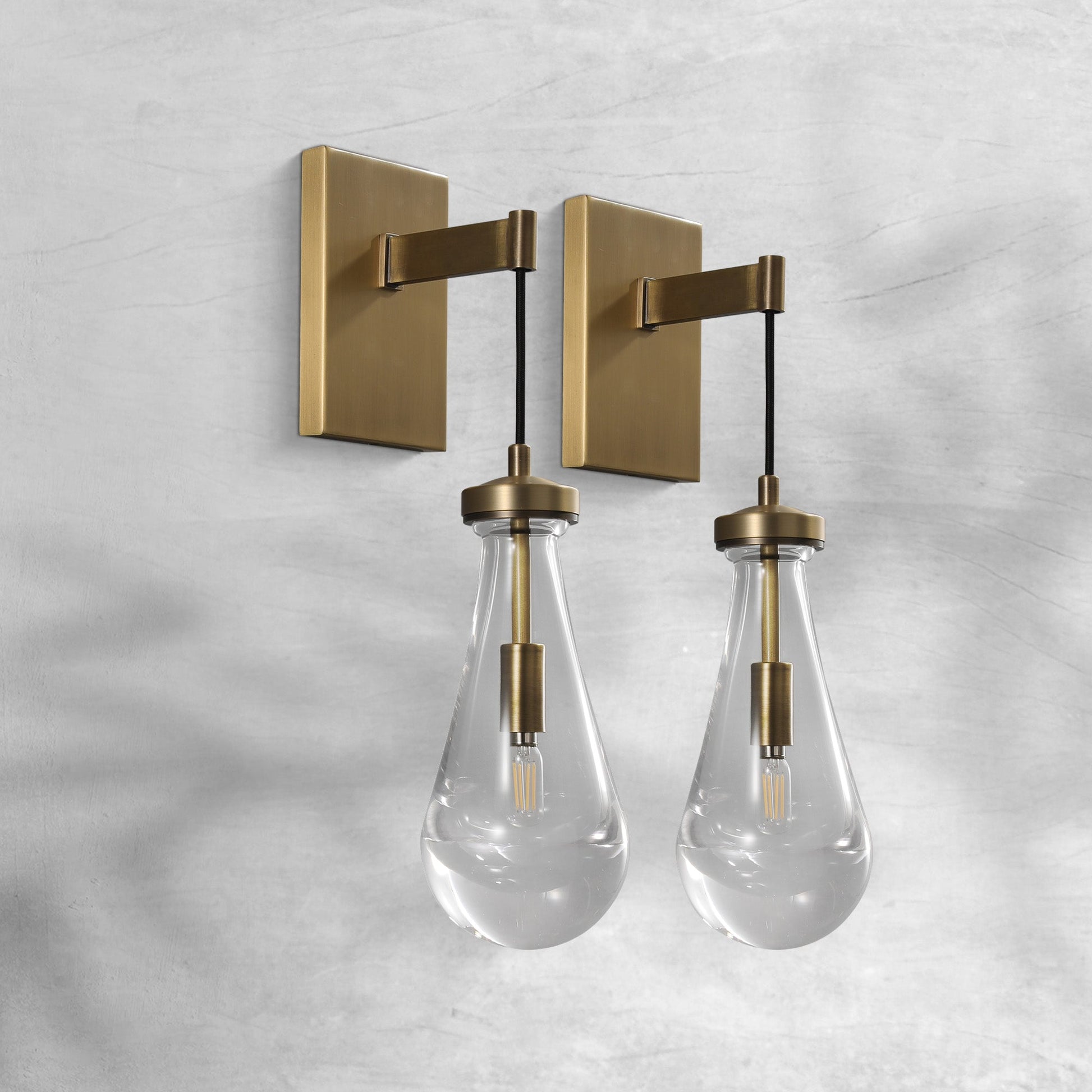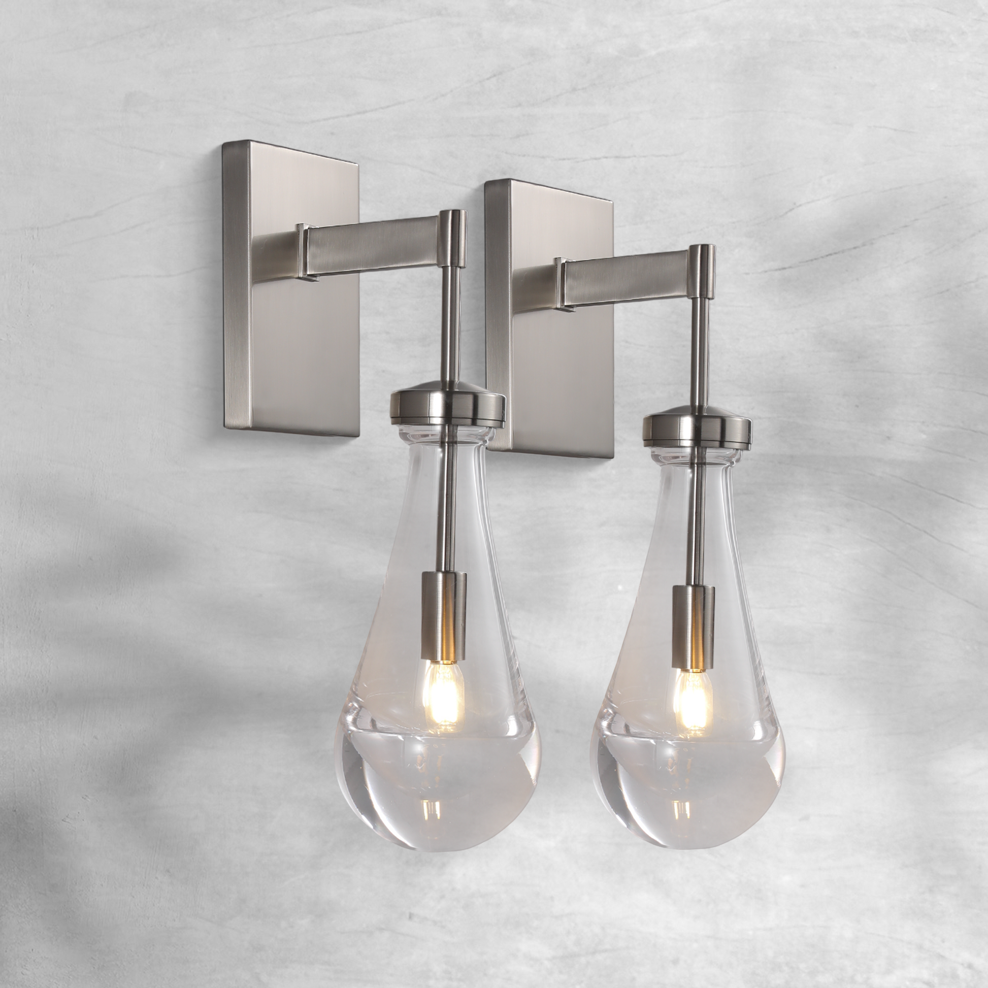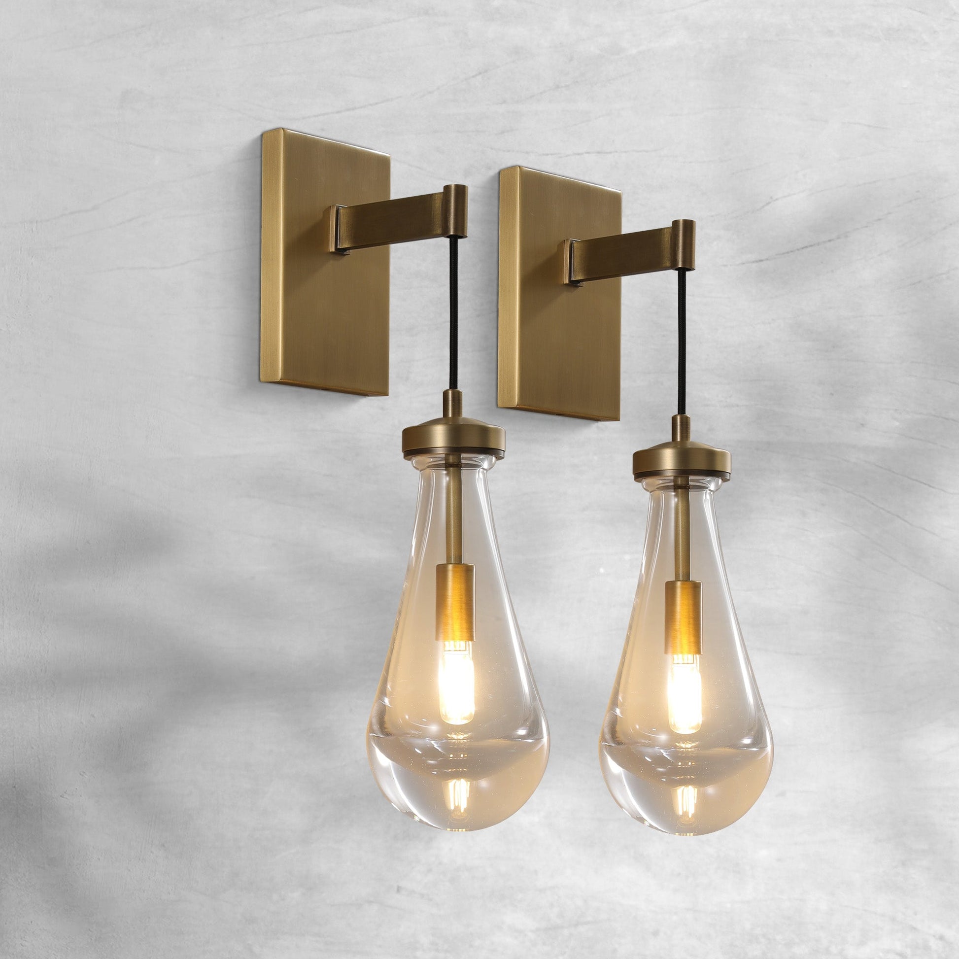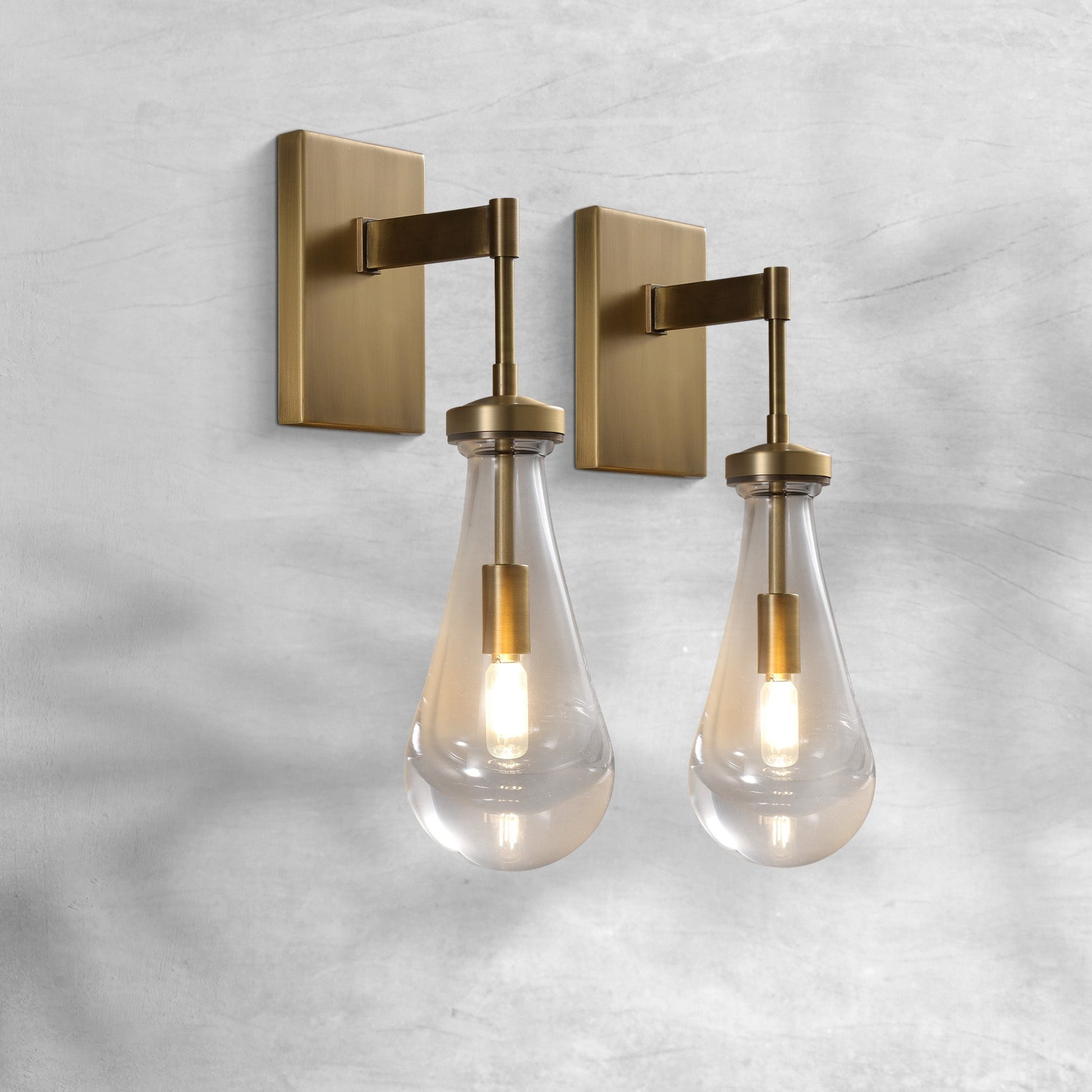 - 【Unique Design】Raindrop-shaped transparent glass lampshade, combining modern and natural beauty. This wall sconce fits perfectly with any style, from modern to rustic.