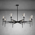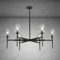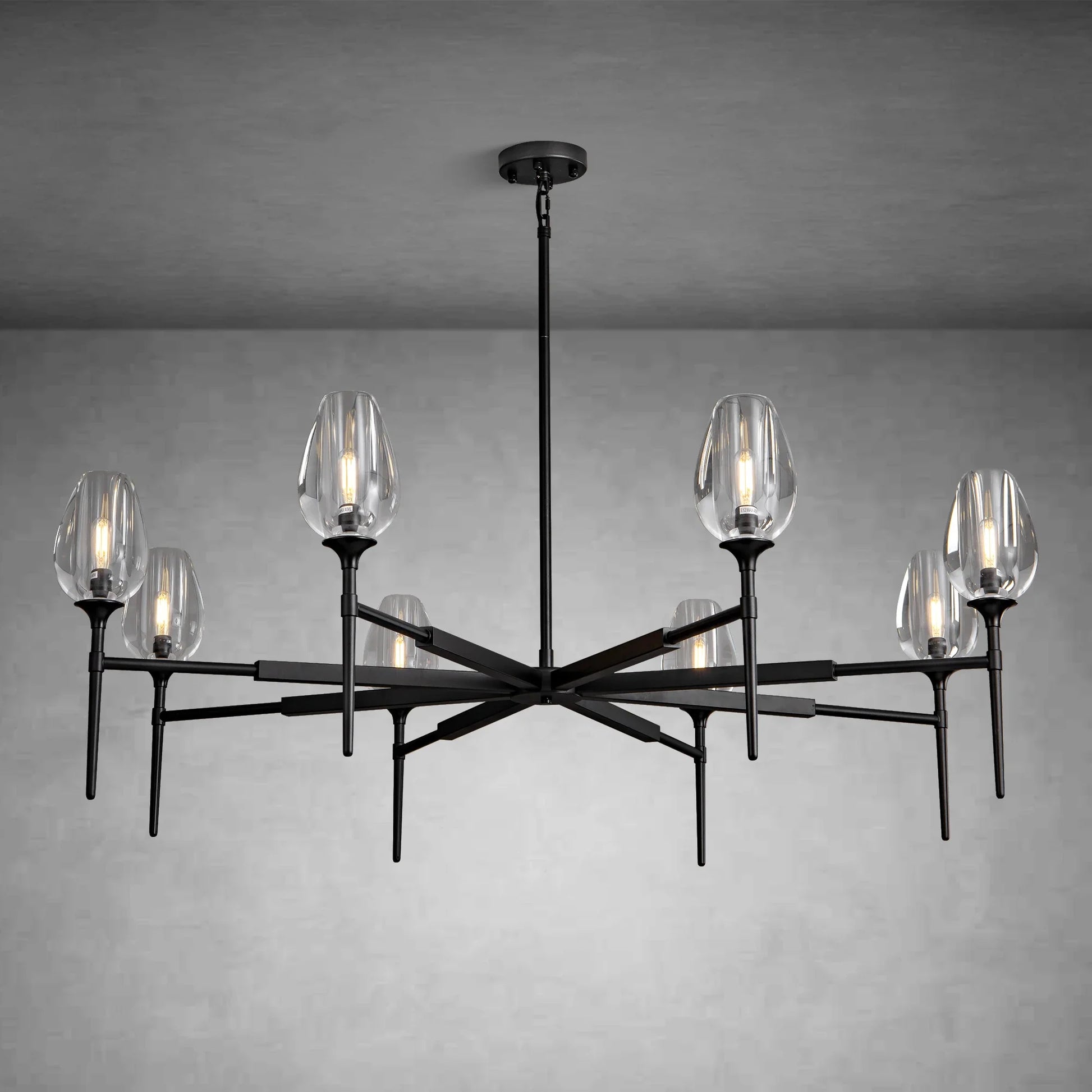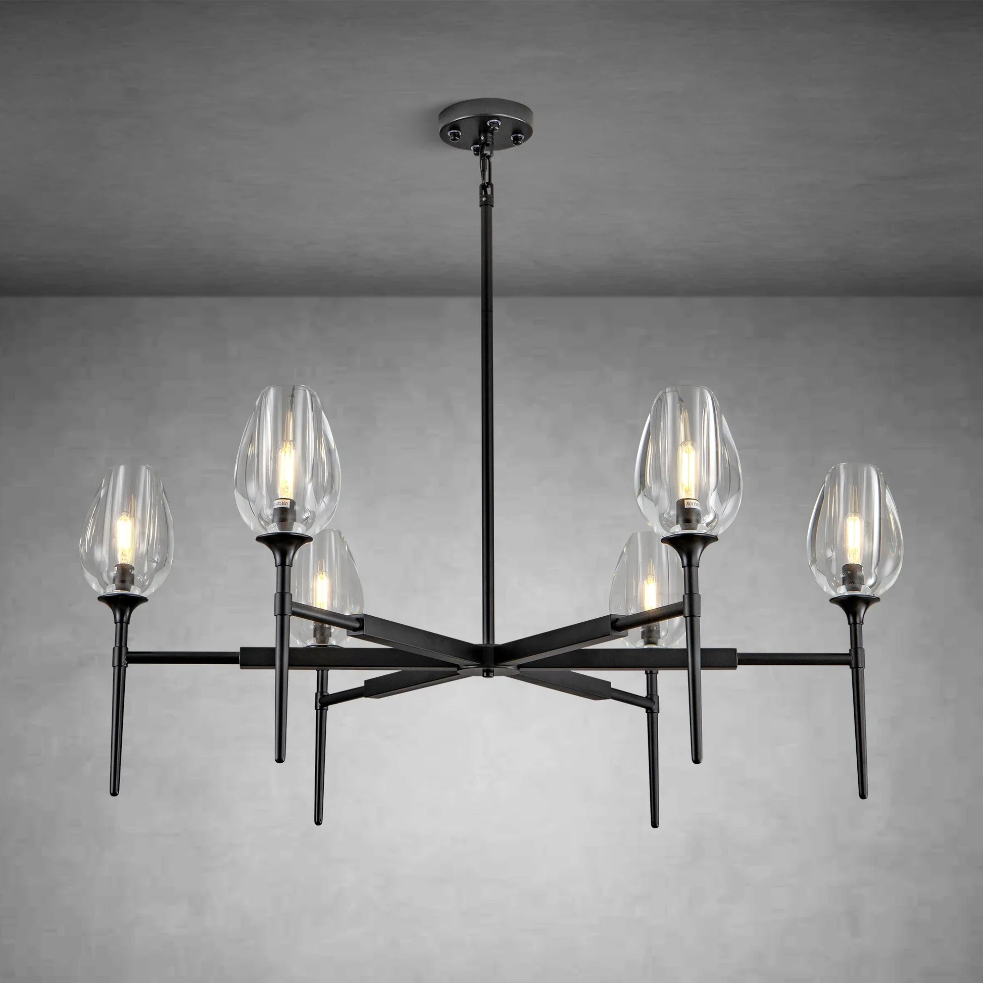 The Modern Tulip Round Chandelier in black finish presents a focused silhouette with crisp geometry and controlled spacing. The form reads as floral-inspired without ornament, emphasizing proportion and structure. Its multi-point lighting delivers even ambient coverage with a defined visual center.