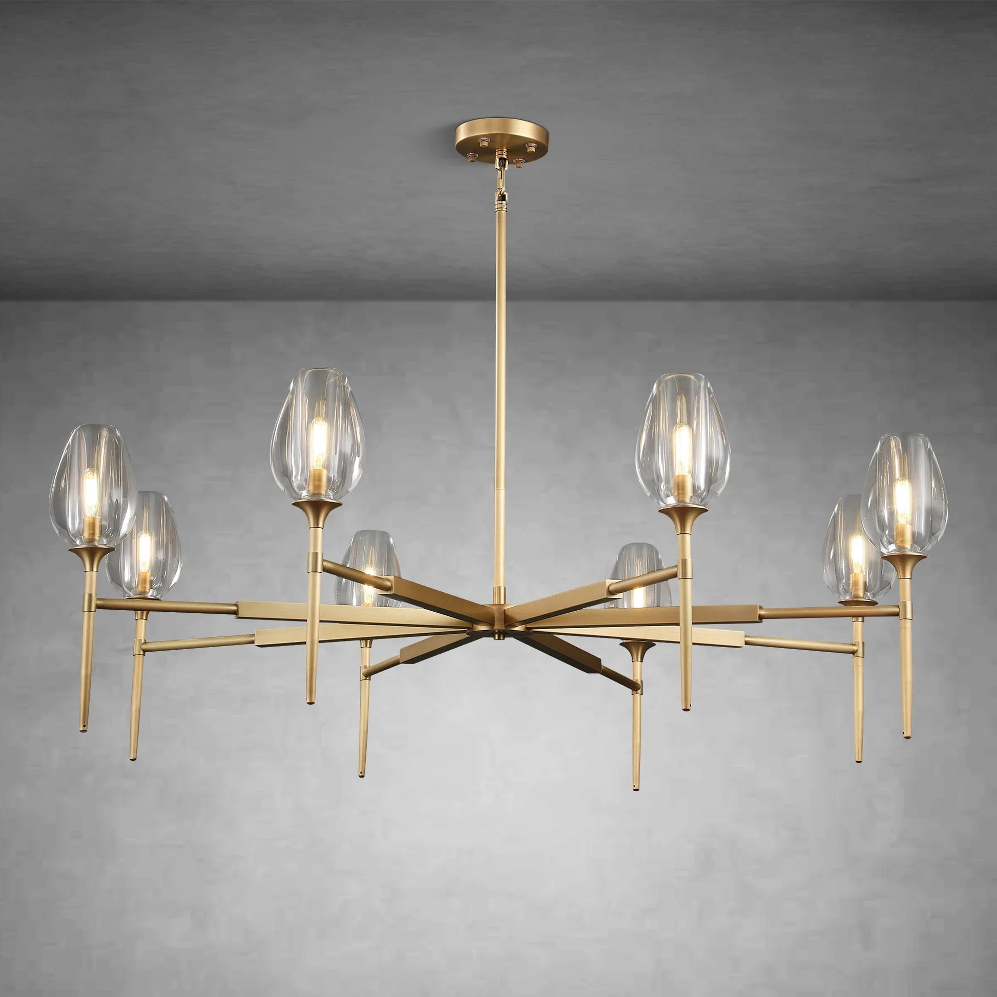 This ceiling-mounted statement chandelier is suited to dining rooms, living rooms, and entry spaces, and is also appropriate for hospitality interiors including restaurants, lounges, and boutique reception areas.