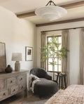 The Mollino Chandelier is a stunning piece that is sure to add a touch of elegance to any space. A sophisticated modern interpretation of the old world, this chandelier is perfect for any room in your home. The beautifully crafted shade is suspended from a fine chain and rod, the contrasting colour finish of the hanging mechanism enhances the soft character of the shade. The shade is in the shape of a shallow bowl with a mesmerising repetition of curves. Light streams from the shallow bowl, creating an eye-catching silhouette and a warm ambience. Whether you're looking for a statement piece for your entryway or a sophisticated addition to your dining room, the Molino Chandelier light is sure to impress.