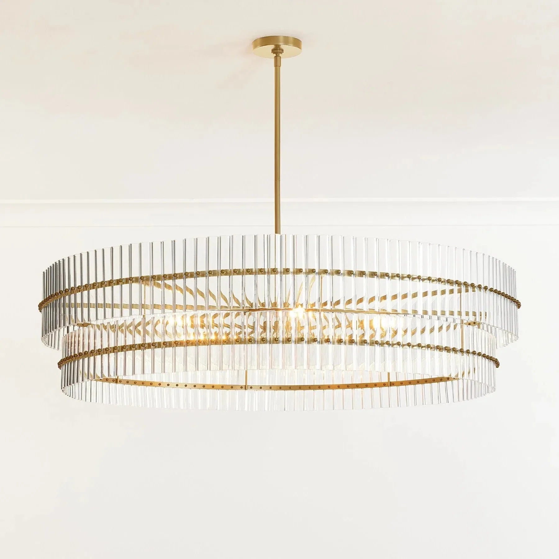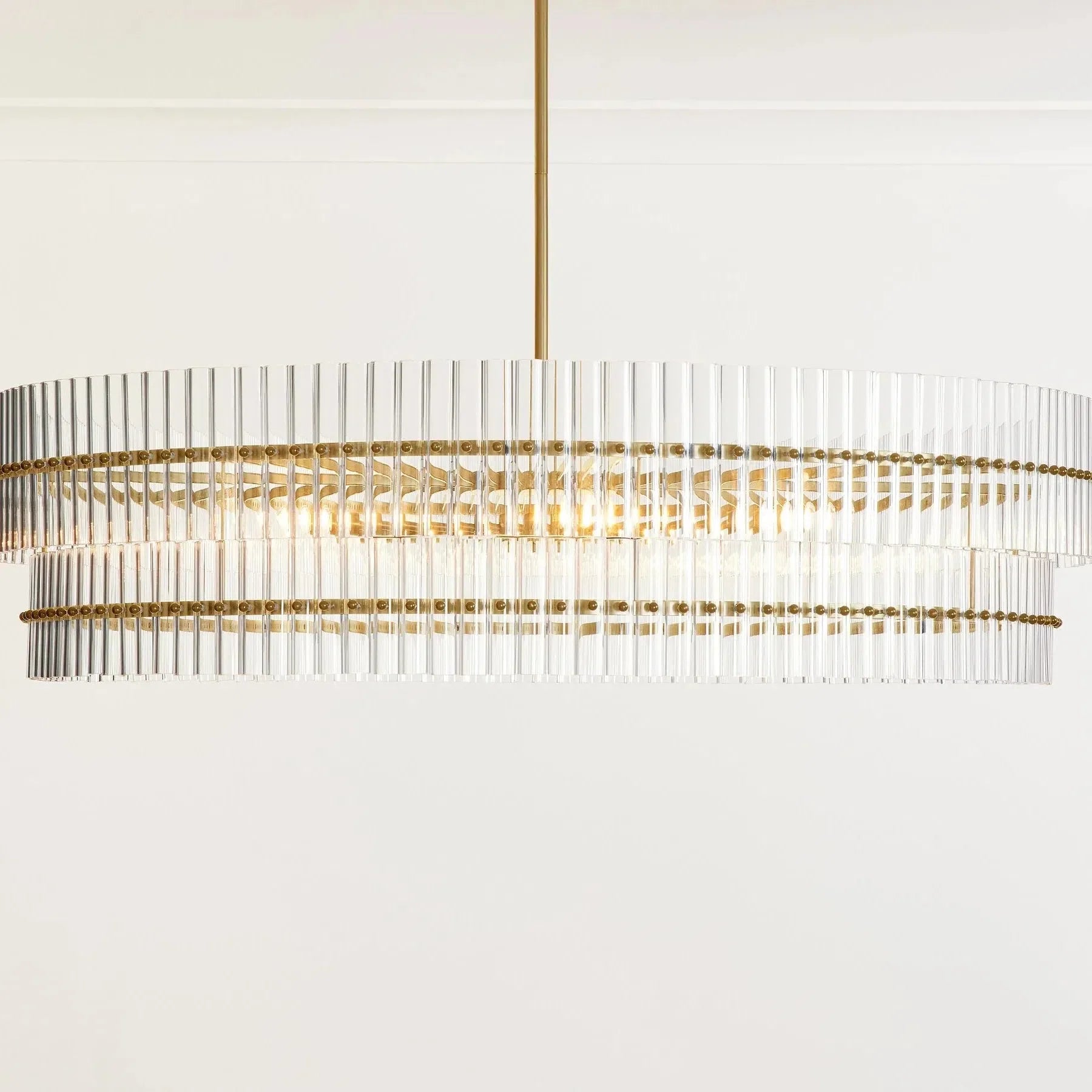 For example, let's say that you have a dining table with 60 inches in length. The chandelier should be between 30 (60 x 1/2) to 45 (60 x 3/4) inches in diameter or length (Same here 1/2 to 3/4 of the kitchen island length)