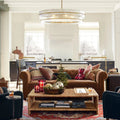 If you are hanging the chandelier above your dining table or kitchen island, you can also decide the size of the chandeliers based on the size of your dining table or kitchen island. We generally recommend that the length or diameter of the chandelier should be between 1/2 and 3/4 of the length of the dining table or kitchen island.