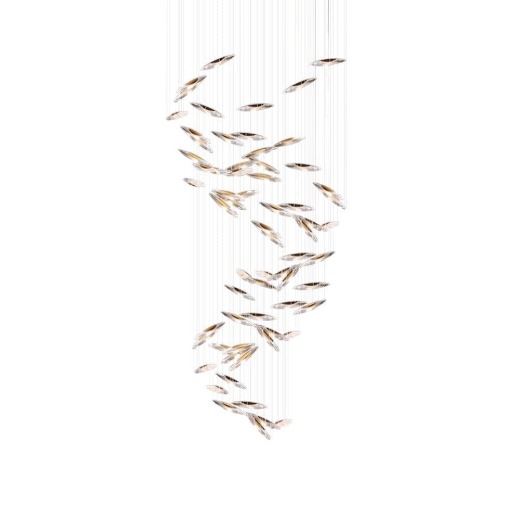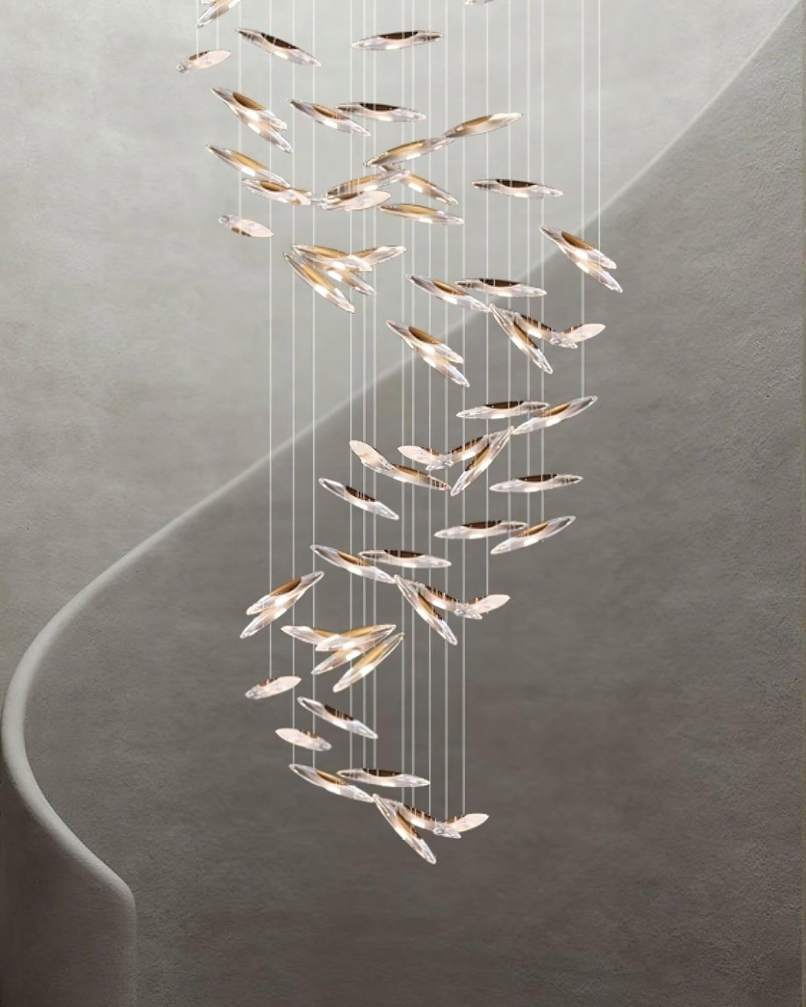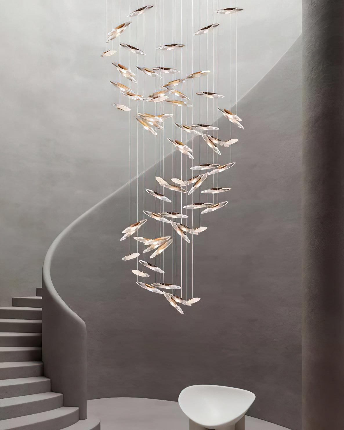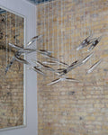 Illuminate your space with our Moonlight Whispers Chandelier. The delicate, suspended installation softly reflects light, casting a tranquil and ethereal ambiance. Perfect for creating a peaceful, calming atmosphere.