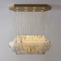 When illuminated, the marble seems to glow as if lit from within, casting a warm radiance that instantly elevates any space. But the real art is in the details. Each marble disk is carefully hand cut and polished to enhance its natural beauty, then strung together on a delicate brass chain to create an organic, free-form shape. The result is a lighting fixture so sculptural, so visually arresting, you'll want to showcase it prominently. Hang it over a dining table, kitchen island or entryway console and be prepared for an endless stream of compliments. Part decor, part conversation piece, this marble moonshade chandelier is destined to be the focal point of any room. Elegant, earthy and strikingly unique, it's a work of art that illuminates in more ways than one.