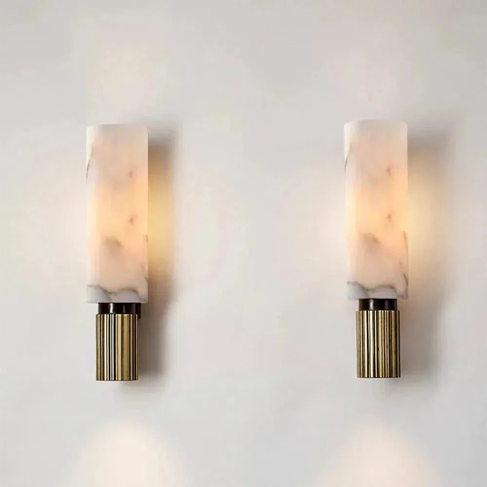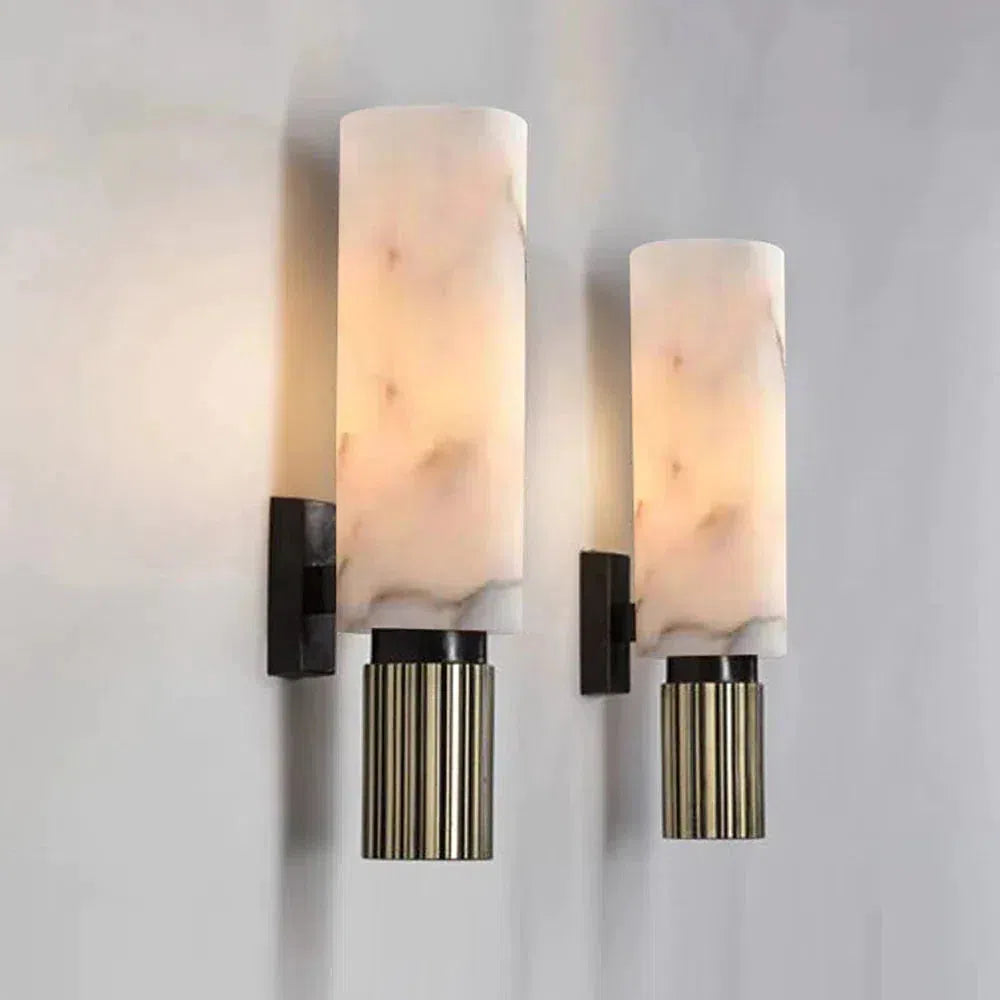Marble sconces are all-natural marble imported from Spain. The natural patterns of sedimentary rock include, but are not limited to, snow patterns, ink patterns, flame patterns, ice cracks, etc. The texture of each sconce is unique.
