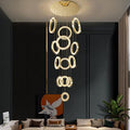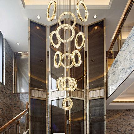 Modern Multi Gold Donuts Shape Crystal Chandelier Ring Round Light Fixture for Foyer Staircase/ Living Room/ Bar/ Hotel Lobby/ Entryway/ LOFT
