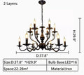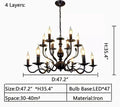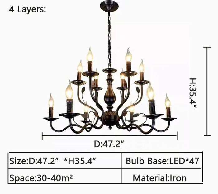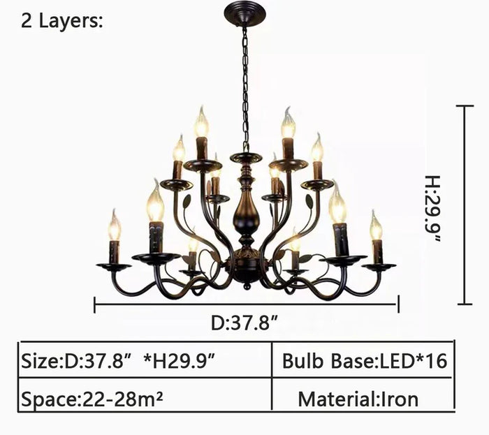 Multi Layer Iron Chandelier with Electronic Candles in Vintage Country Style for Living Room Cafe and Study