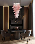 Murano Pink Felch Spiral Chandelier, Enhance your living space. This stunning piece is a perfect blend of modern elegance and artistic craftsmanship, featuring meticulously handcrafted Pink glass pieces arranged in a captivating spiral design. Illuminate your space with a captivating glow, creating a warm and inviting ambiance. Each piece of glass reflects light beautifully, adding depth and dimension to any room.