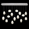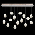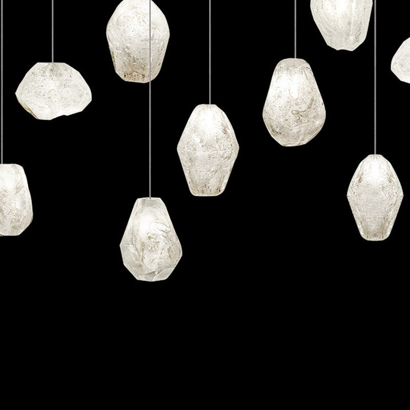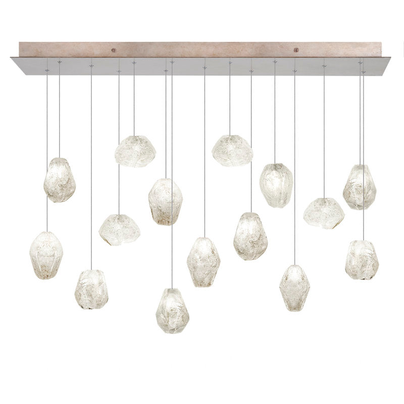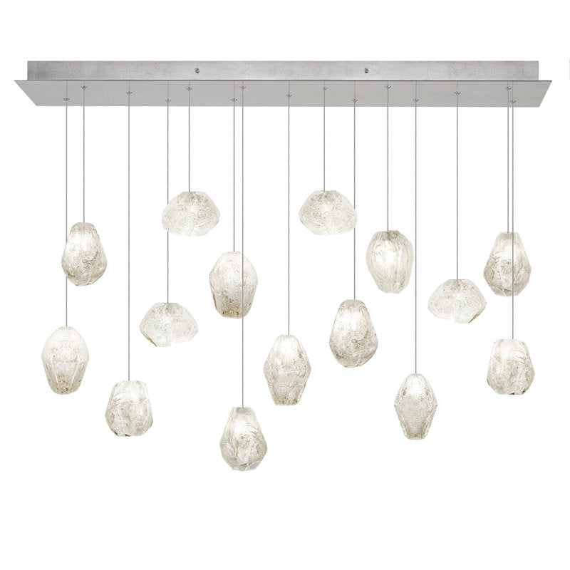Master glass artisans blend quartz with other minerals to create a quartz drop pendant with a leaf canopy.