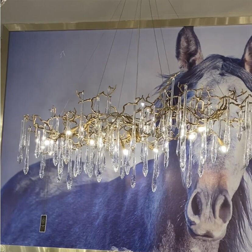 New Clear Crystal Rain Copper Branch Chandelier Modern Designer Pendant Light For Dining Table/Kitchen Island