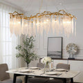 Inspired by Niagara falls magnificence, this collection embraces the tenacious and raw side of nature, with a very close visual density of its inspirational waterfall through the glass pieces. The solid glass presence represents the untamed motion of water shape, complete with organic patterns in a game of transparency and opacity, a characteristic that counteracts inertia and enhances movement. The metal structure follows the main concept with vines in a never-ending fluid motion. Ideal for horizontal displays of contemporary-style interiors. |