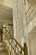 It's like a waterfall cascading down, with dazzling crystals shimmering silver and pouring down from the ceiling. This Icicle Crystal Chandelier is a stunning work of art custom made for the staircase and is absolutely the most unparalleled in its beauty.