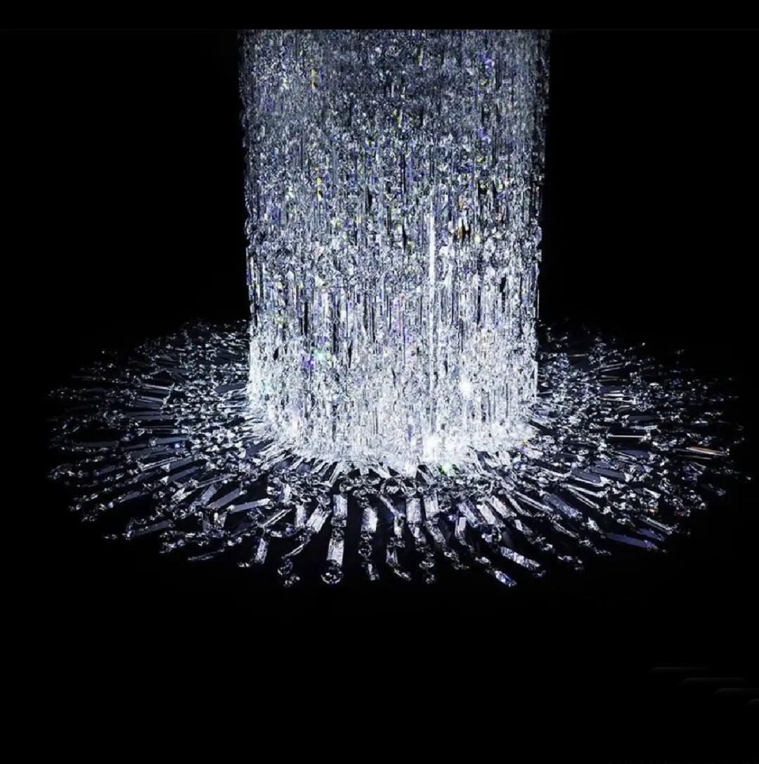 Oversized Silver Crystal Long Ceiling Chandelier Art Designer Column Waterfall Decorative Staircase Light Fixture