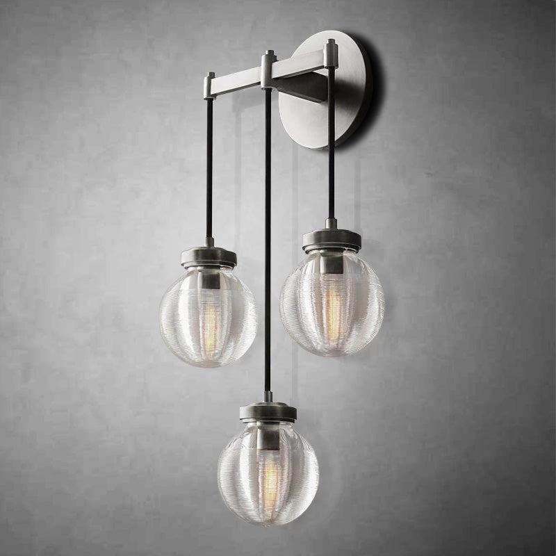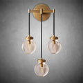 Made of glass and brass, this Wall Sconce is inspired by pearls, with intricate grooves carved into the glass pearls, creating shimmering layers of light that bring luster and make these pieces feel ethereal and intimate at the same time.