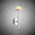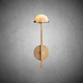 Minimalist in design yet maximalist in effect, our lighting collection was inspired by a midcentury Italian silhouette. Metal armatures reminiscent of architectural tracery support a constellation of dome-shaped, translucent alabaster shades that highlight the stone's natural veining and coloration. The sculptural form emits a warm, filtered glow.