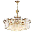 | This lovely modern gold crystal conical chandelier is an excellent addition to almost any space. Features a gold finish draped with finely crafted, precision-cut crystals. |