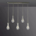 The lightings from our Raindrop collection is a captivating piece with raindrops lightings that look like raindrops. Handcrafted from blown glass and a metal frame, this fixture is lit to refract a rich light effect, creating the illusion of underwater lighting.