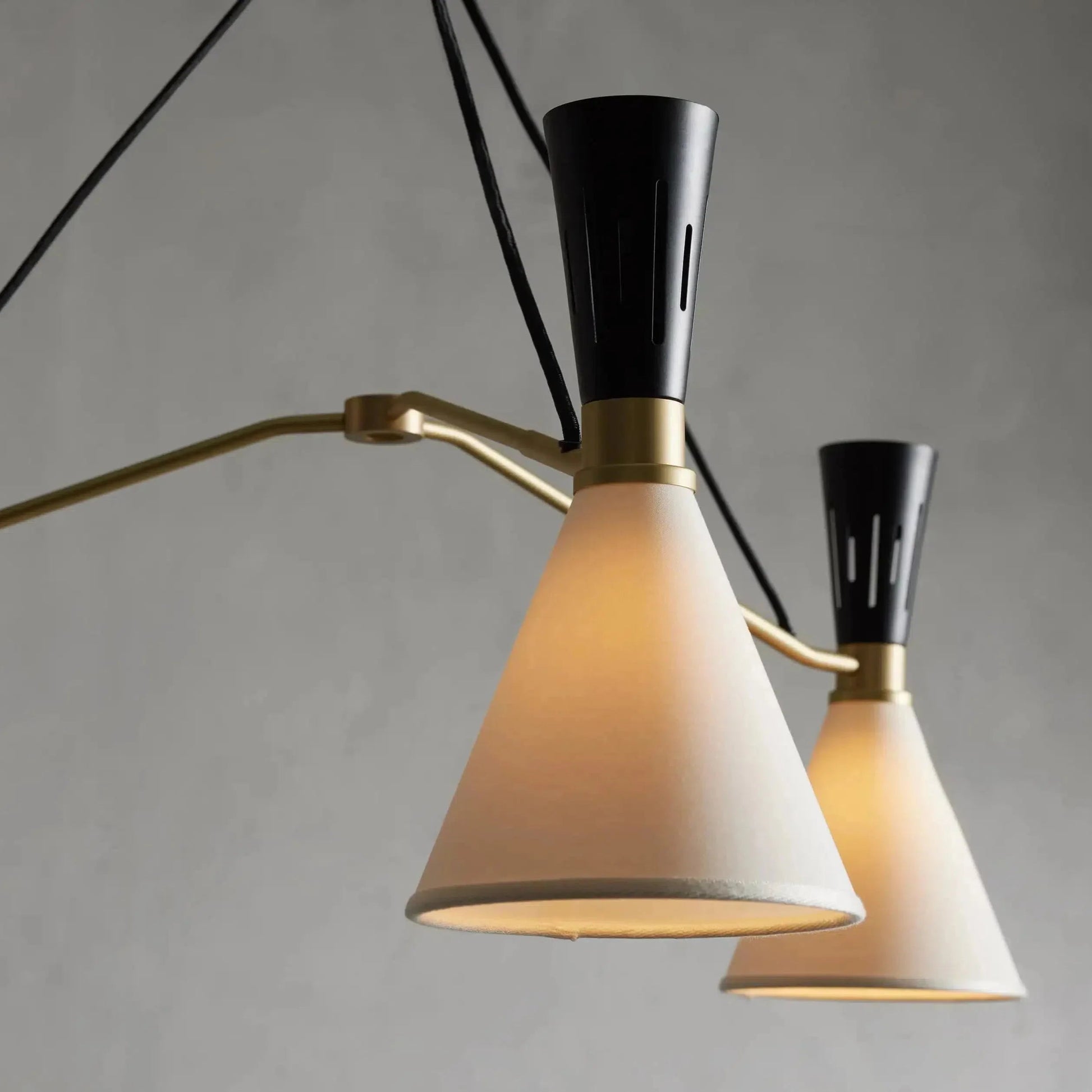 - Inspired by an antique found in a Parisian flea market, our Ramsey Lighting Collection boasts a mid-century Italian sculptural silhouette. Hand-crafted by artisans in northern Italy, Ramsey features exposed, black-fabric cord supporting a beautiful brass frame. The fabric shades add the perfect contrast in texture emitting a soft, warm glow.