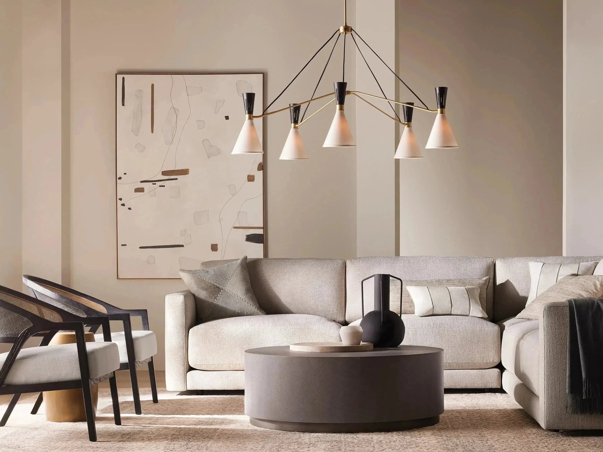 - Inspired by an antique found in a Parisian flea market, our Ramsey Lighting Collection boasts a mid-century Italian sculptural silhouette. Hand-crafted by artisans in northern Italy, Ramsey features exposed, black-fabric cord supporting a beautiful brass frame. The fabric shades add the perfect contrast in texture emitting a soft, warm glow.