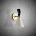 - Made from metal and fabric featuring a matte black finish with satin brass accents.