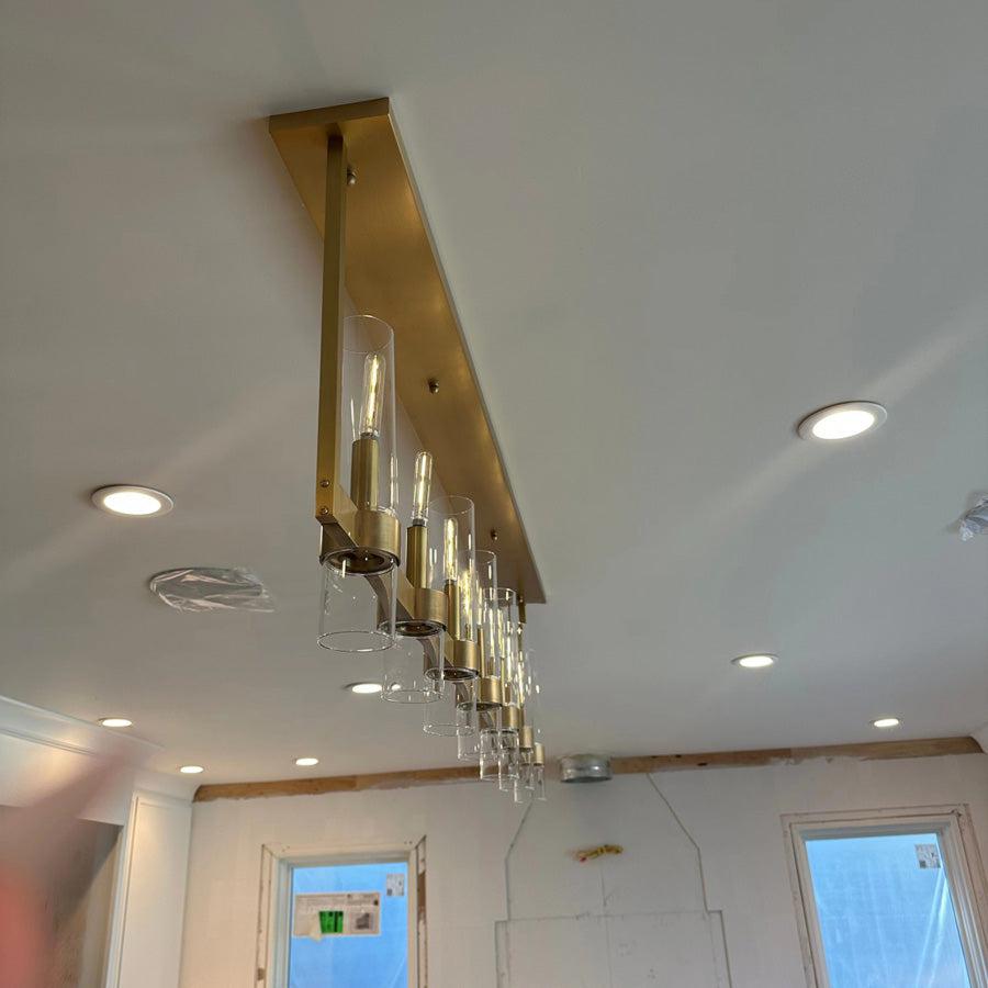 | Each glass lampshade combines high-quality copper elements to highlight luxury. Each glass lampshade is carefully blown by workers with many years of manual experience. Ceilings and fittings are made of solid brass. The glass lampshade is clear and bright, reflecting warm light. It highlights the elegance and temperament of this chandelier. |