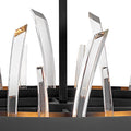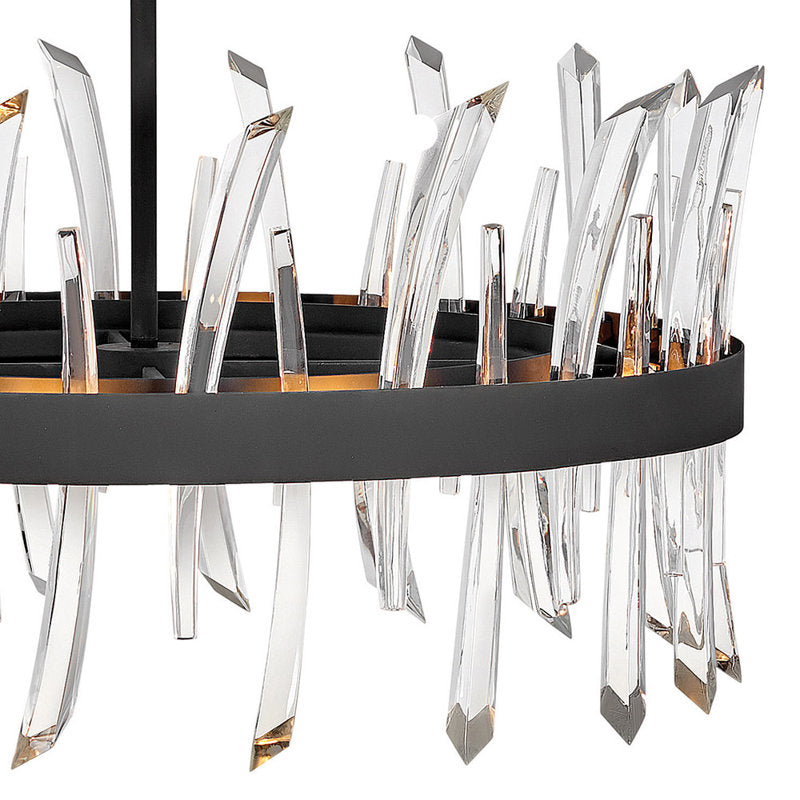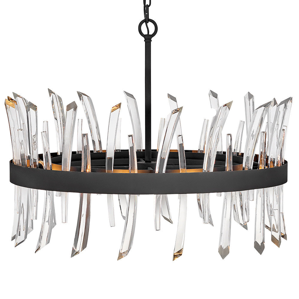 A compelling design that captivates from any angle, the Revel family gleams with sophistication. Luxurious crystal rods are honed into unexpected asymmetrical formations to produce an organic elegance that is both raw and refined.