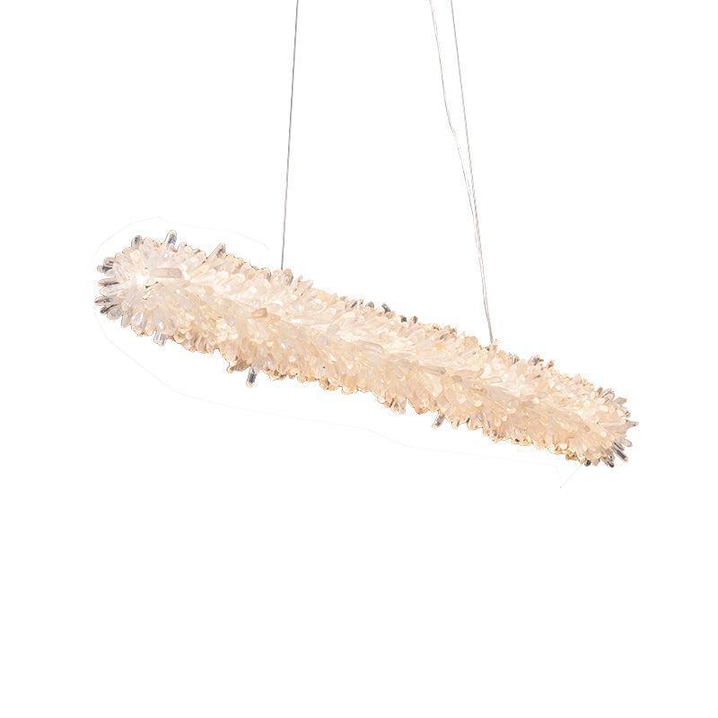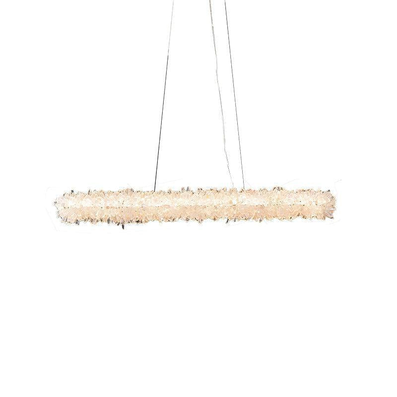 The Rock Crystal Linear Chandelier is perfect for contemporary and modern homes alike, this chrome finish matches well with the rock crystals, shows the beauty of the rock crystal prisms.