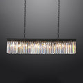 - The Art Deco style of the Rhys collection is reflected in the straight and curved lines of our elegant fixtures. Its optical-grade prisms are arranged in evenly spaced concentric rings, suspended from an iron frame that shines in harmony.