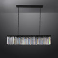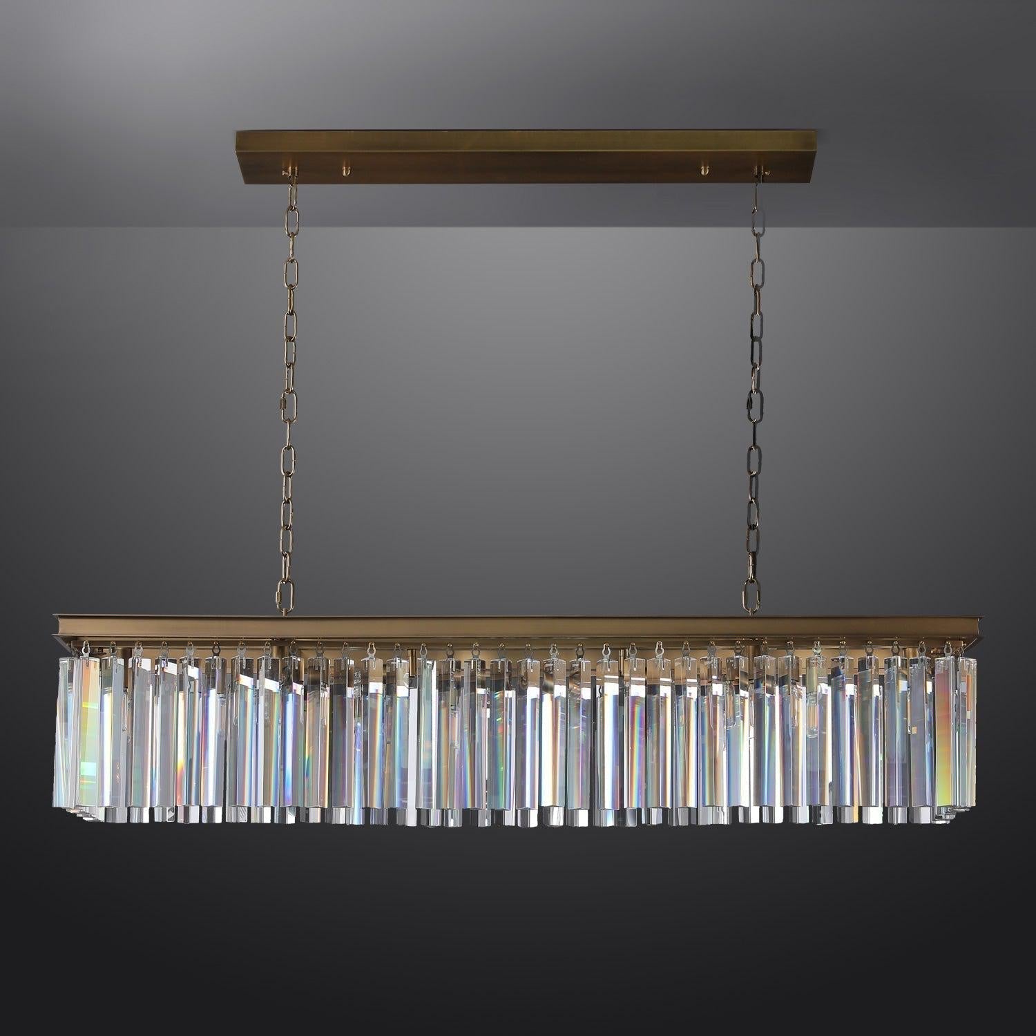 - The Art Deco style of the Rhys collection is reflected in the straight and curved lines of our elegant fixtures. Its optical-grade prisms are arranged in evenly spaced concentric rings, suspended from an iron frame that shines in harmony.