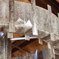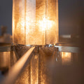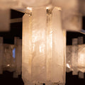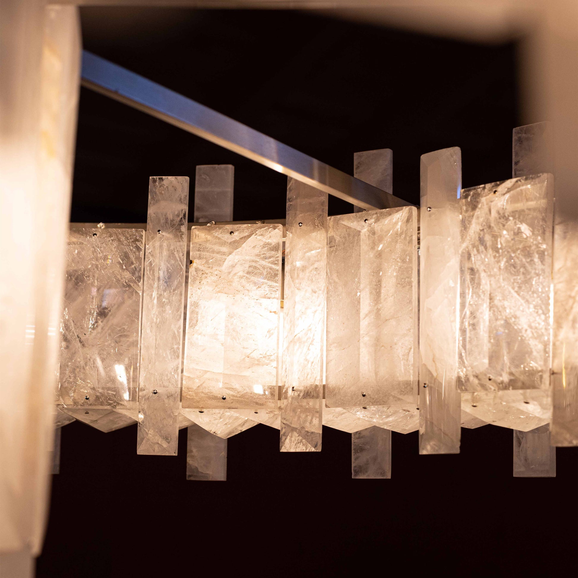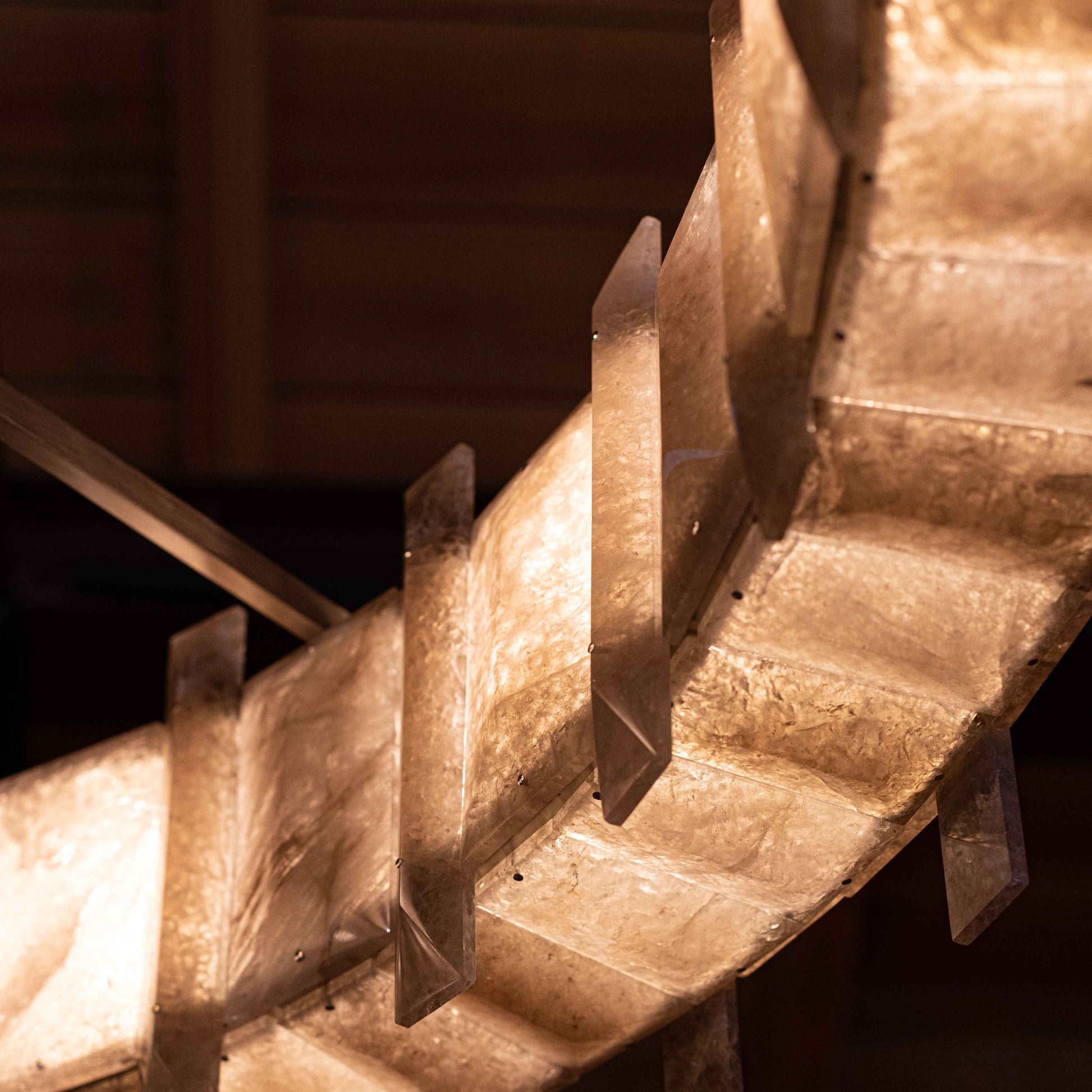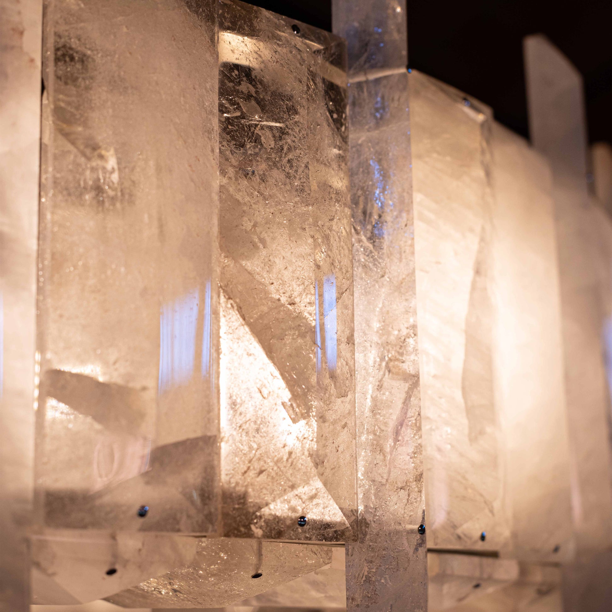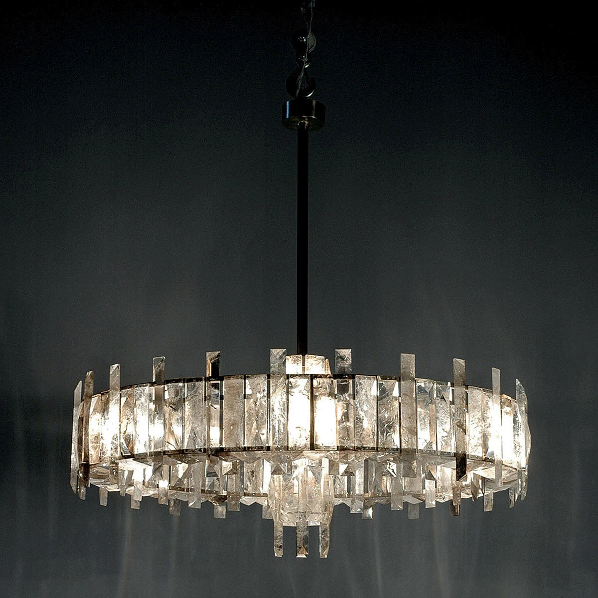 In the grand tradition of semi-precious stones, Mathieu shows a particularly innovative example with a very seductive aesthetic. This collection’s theme, interstellar, recounts the history of the planets; a shuttle covered in rock crystal allegedly stole light from the stars to light our sleepless nights. One can also imagine the mechanical gears and industrial design that inspired the art of the twentieth and twenty-first centuries chandelier becoming the signature of Mathieu Lustrerie. It was inevitable one should be acquired by the Mobilier National Français for its early twenty-first century decorative art collection.
