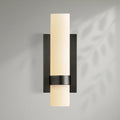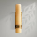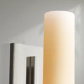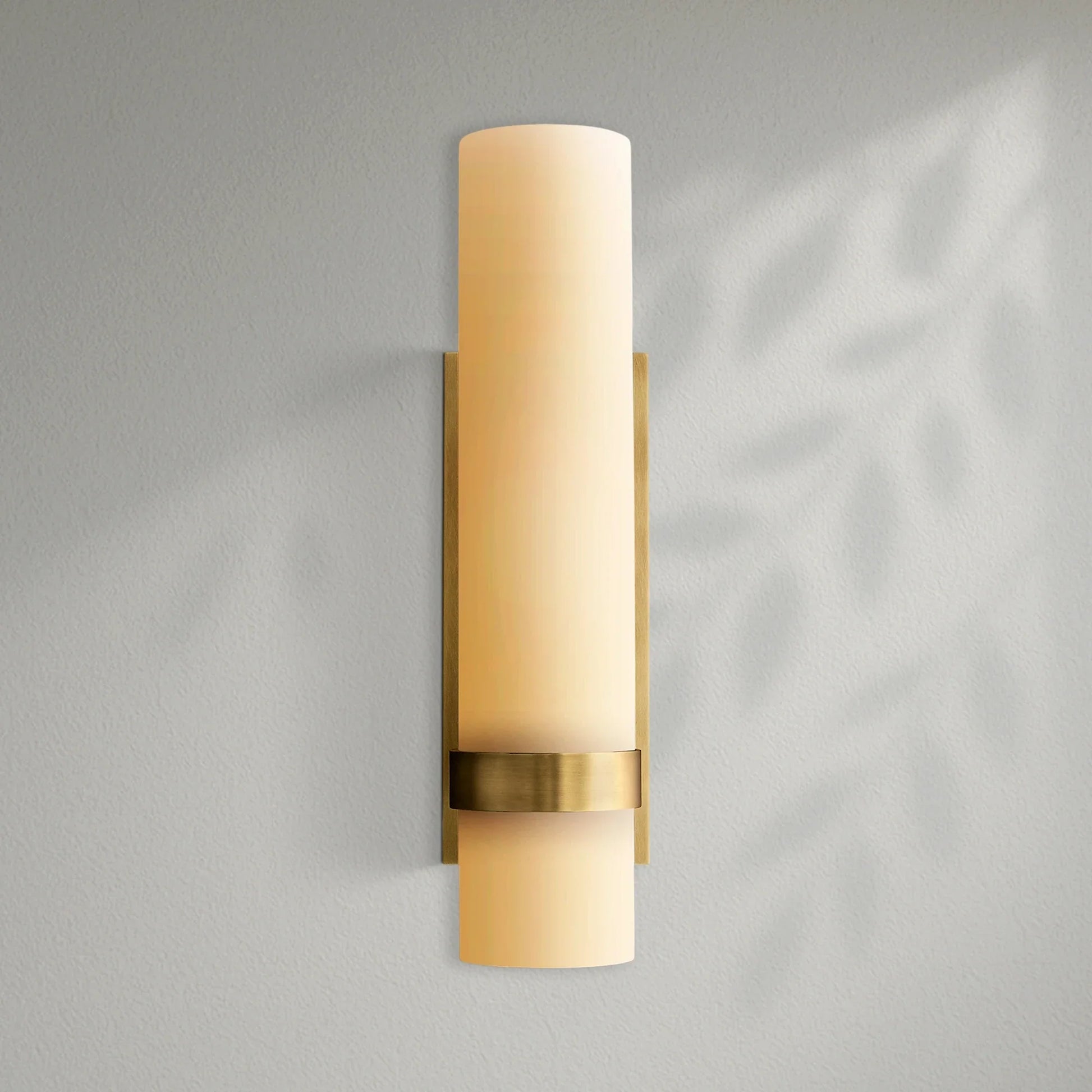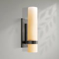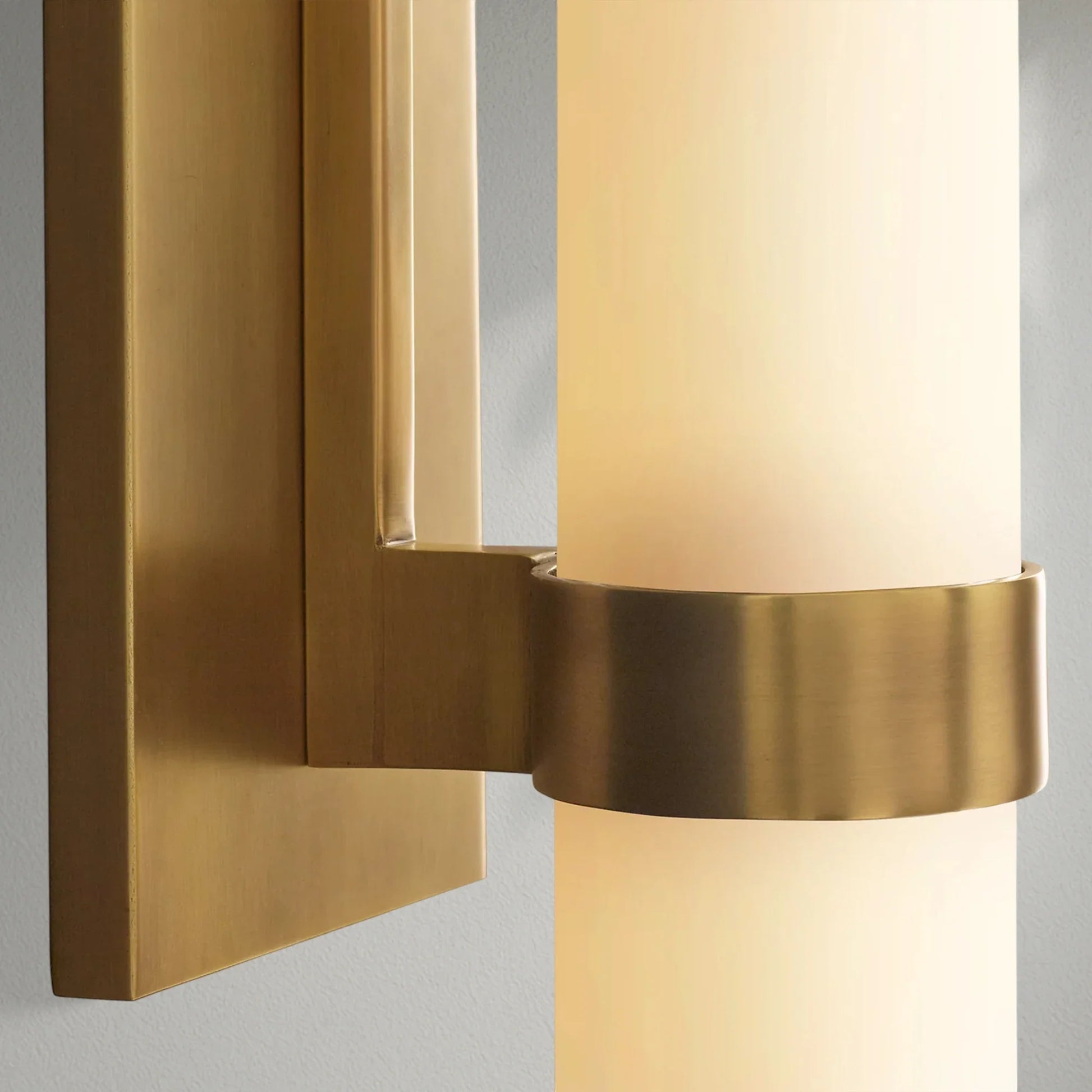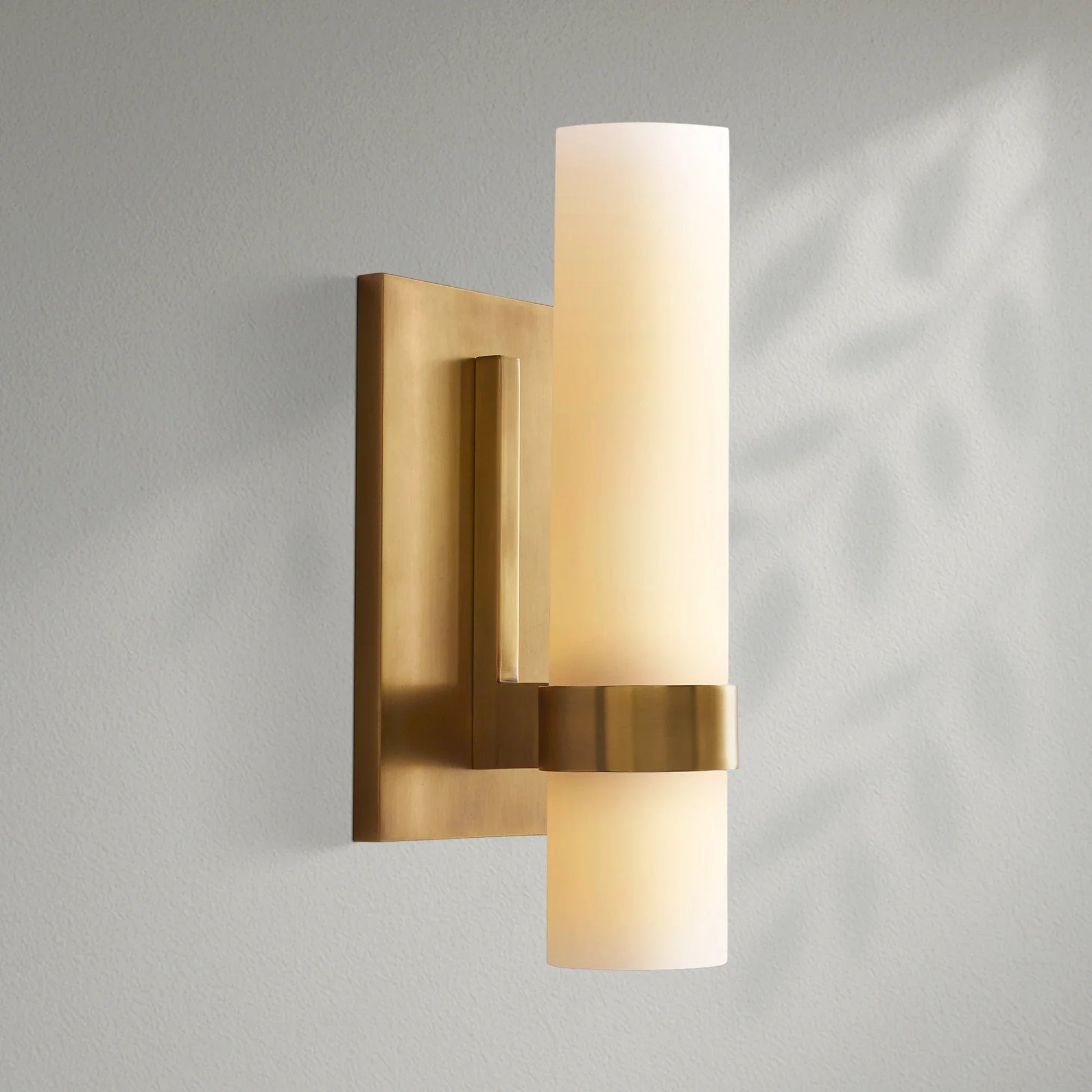 Art Deco forms are reimagined with a modern minimalist sensibility in this collection from renowned lighting designer. Crafted of solid steel, unadorned metal bands hold the slender glass cylinders in place, in a state of perfect equipoise. Within each, E