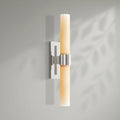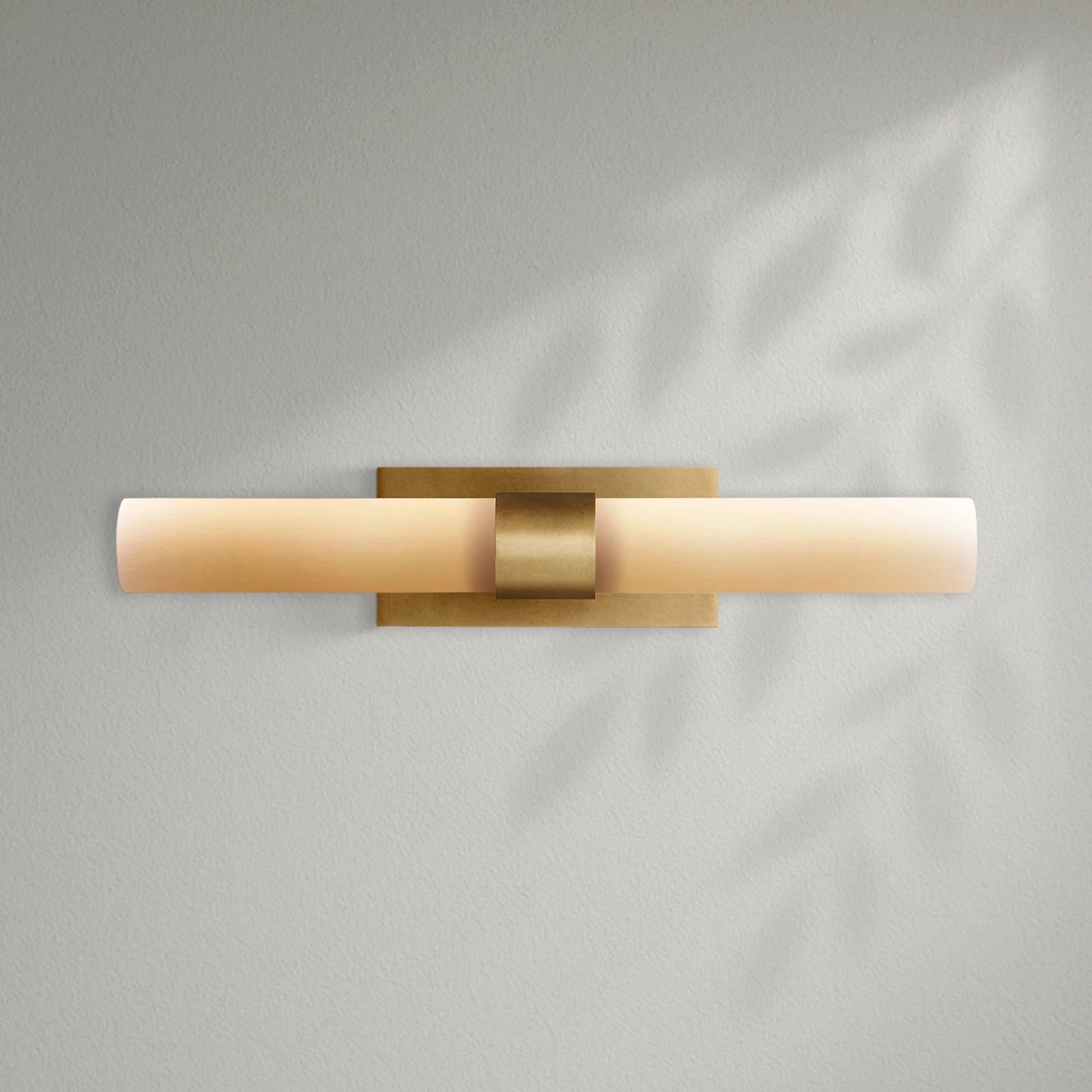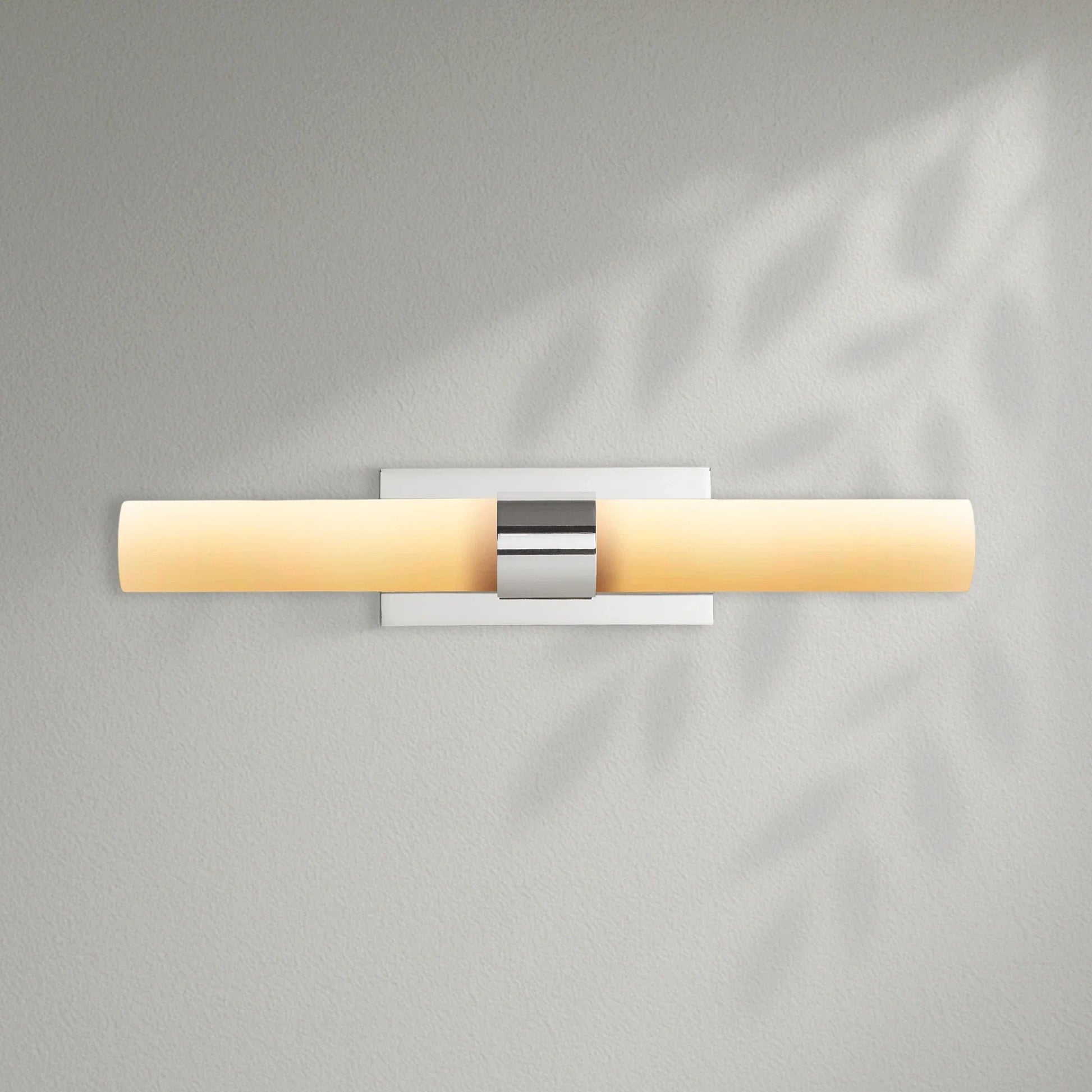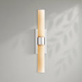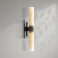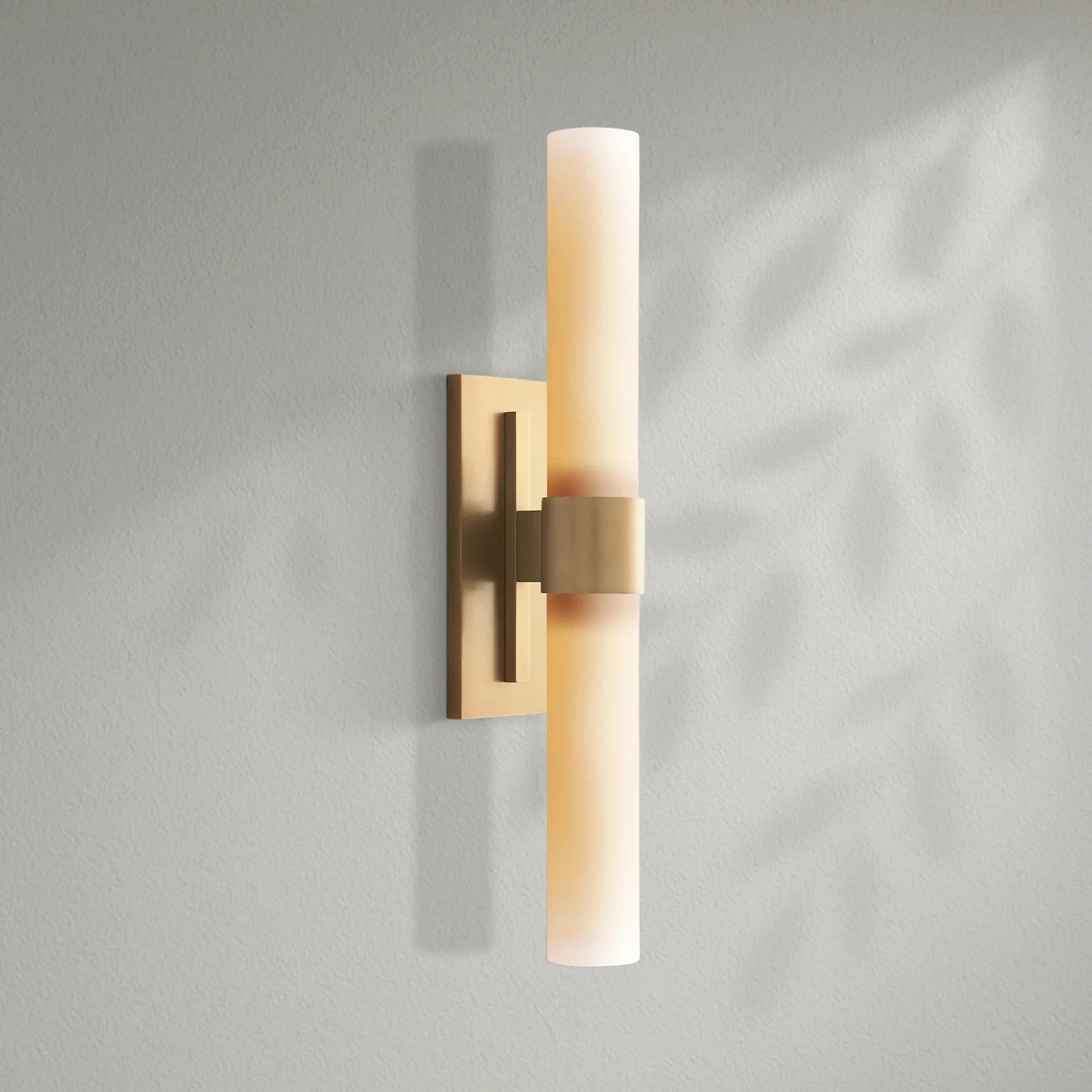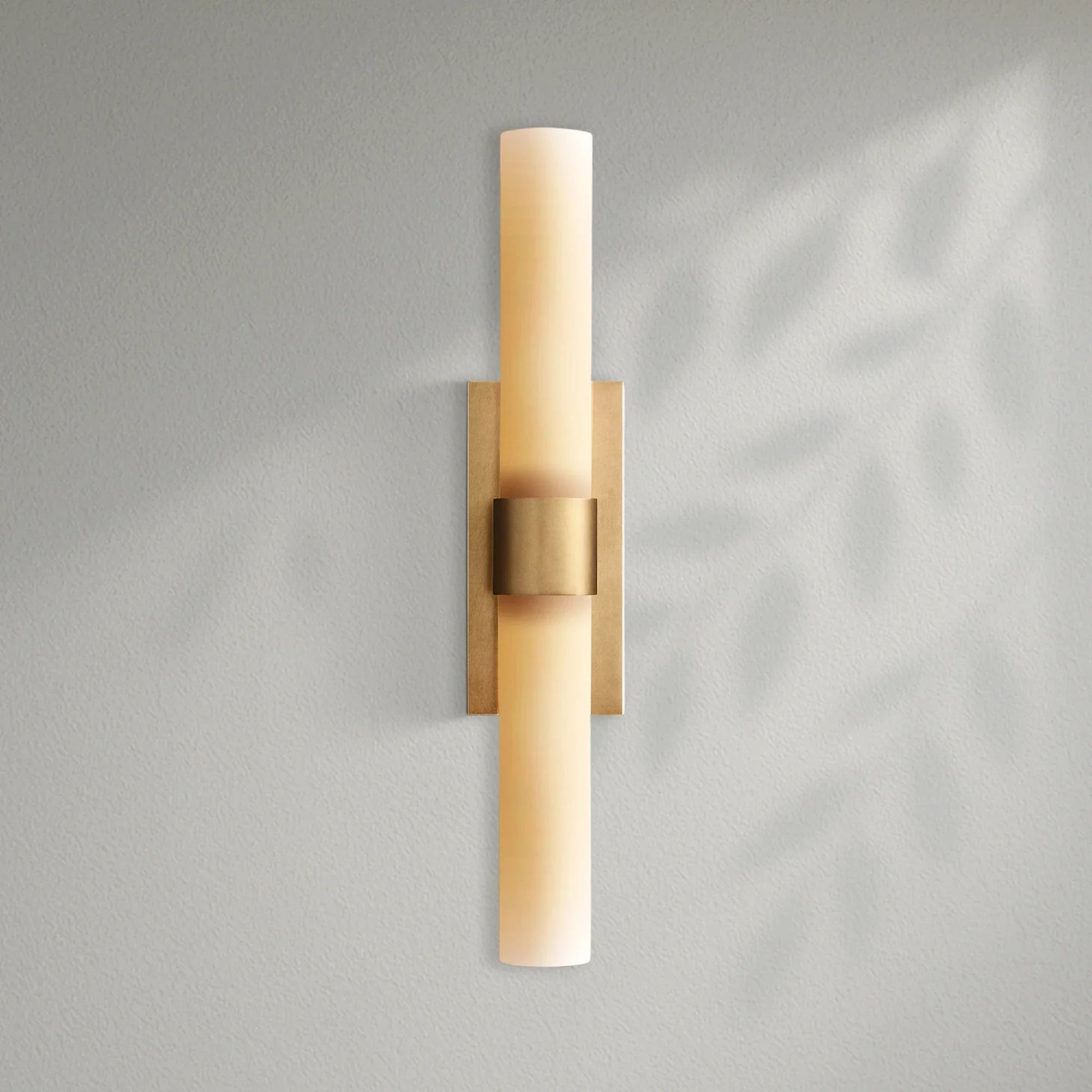 Art Deco forms are reimagined with a modern minimalist sensibility in this collection from renowned lighting designer. Crafted of solid steel, unadorned metal bands hold the slender glass cylinders in place, in a state of perfect equipoise. Within each, Edison bulbs glow with the warmth of candlelight.
