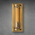 In our Saviler collection, renowned San Francisco designer Jonathan Browning has created a masterful study of solid and void. A monumental block of crystal is carved with a concave channel to hold an Edison bulb, and set in a frame of solid brass. The crystal reveals its solidity when illuminated, refracting and reflecting the bulb within, but takes on a weightless transparency when dark.