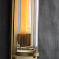 In our Savilen collection, renowned San Francisco designer Jonathan Browning has created a masterful study of solid and void. A monumental block of crystal is carved with a concave channel to hold an Edison bulb, and set in a frame of solid brass. The crystal reveals its solidity when illuminated, refracting and reflecting the bulb within, but takes on a weightless transparency when dark.