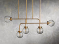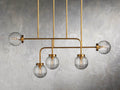 - The perfect fixture to accentuate modern, industrial décor, our Sayre Linear Chandelier is crafted from steel and features a plated Burnished Brass finish. Mouth-blown glass globes feature a striking ribbed texture.