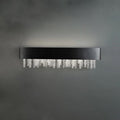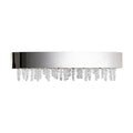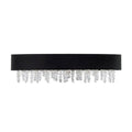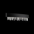 This is a sleek, modern curved pendant decorated with optical crystal filaments of varying lengths that resemble melodic scales. It utilizes state-of-the-art LED technology to provide powerful, energy-efficient and quality illumination of the surface below. Available in three finishes including aged brass, polished nickel and black.
