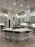 For example, let's say that you have a dining table with 60 inches in length. The chandelier should be between 30 (60 x 1/2) to 45 (60 x 3/4) inches in diameter or length (Same here 1/2 to 3/4 of the kitchen island length)