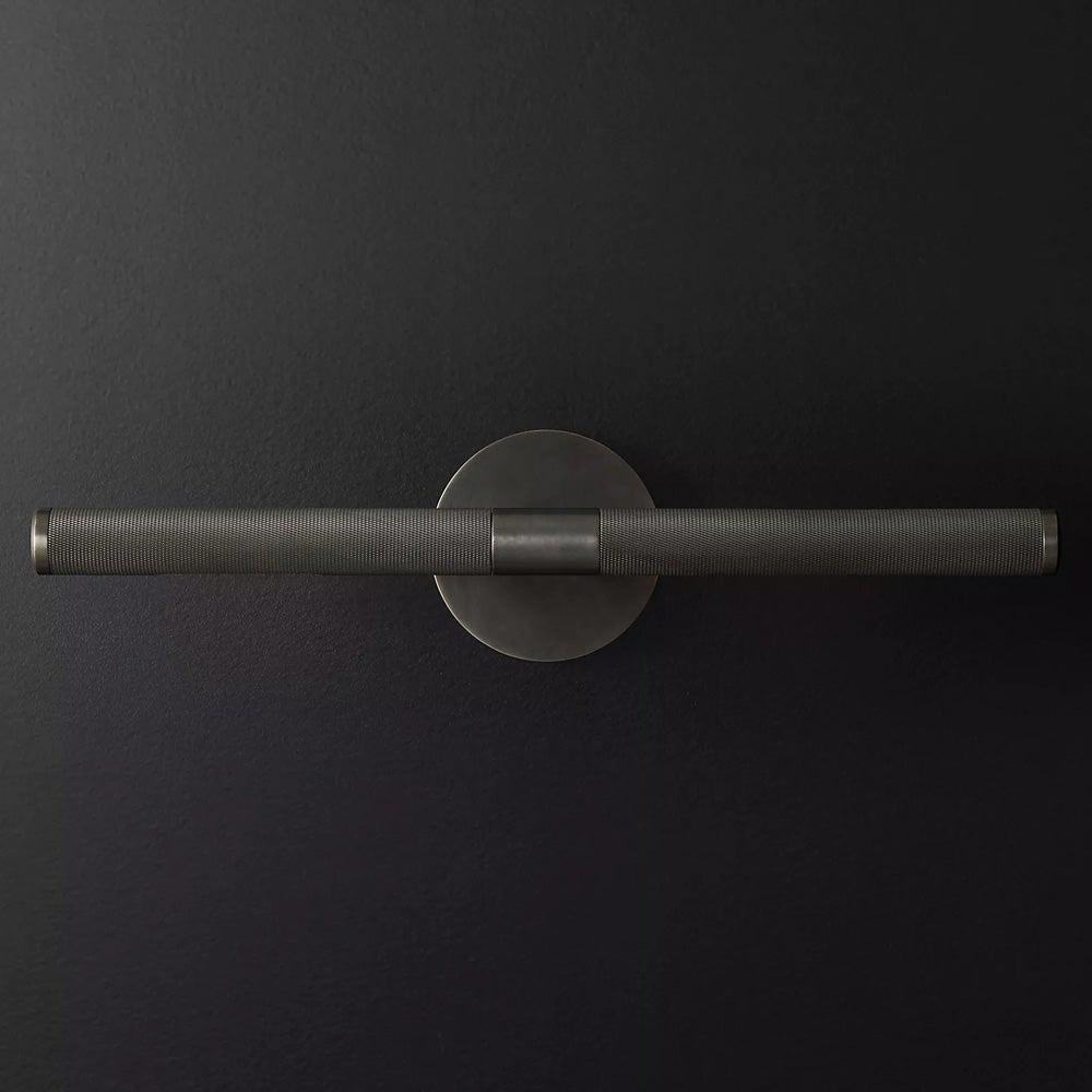 A knurled pattern luminaire made of solid brass. Can be used to illuminate art films, photographs, etc.