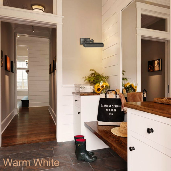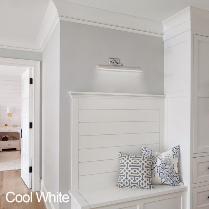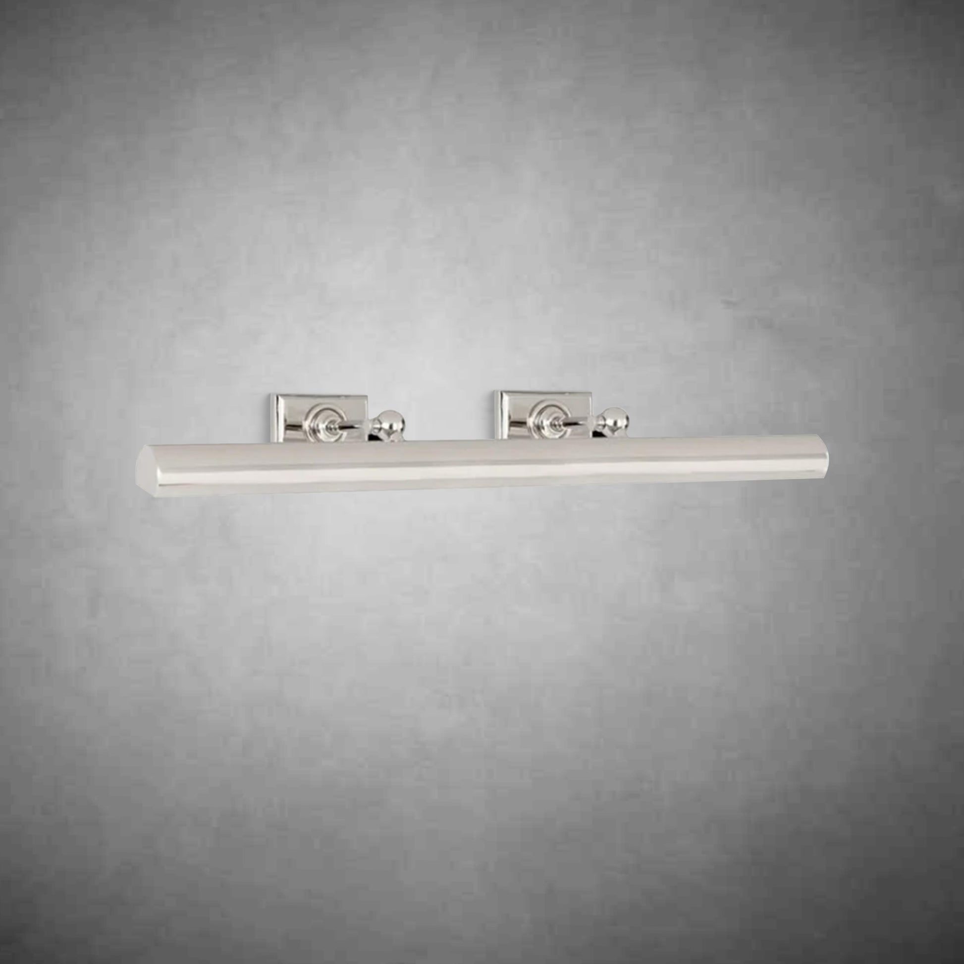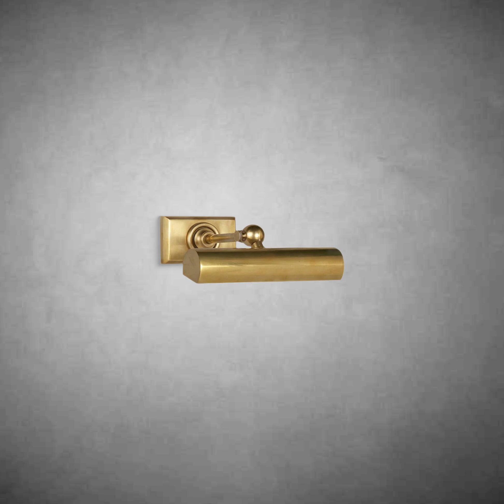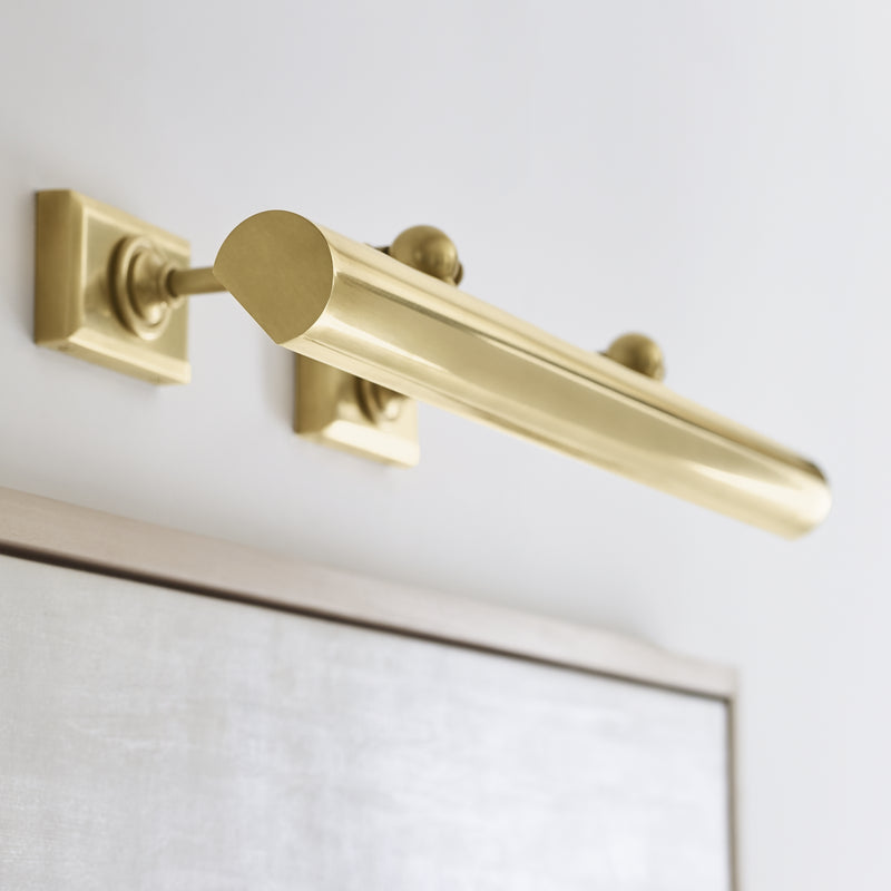 This Led picture light is made of brass with integrated Led panel. The soft lights source gives a focused swath of light.