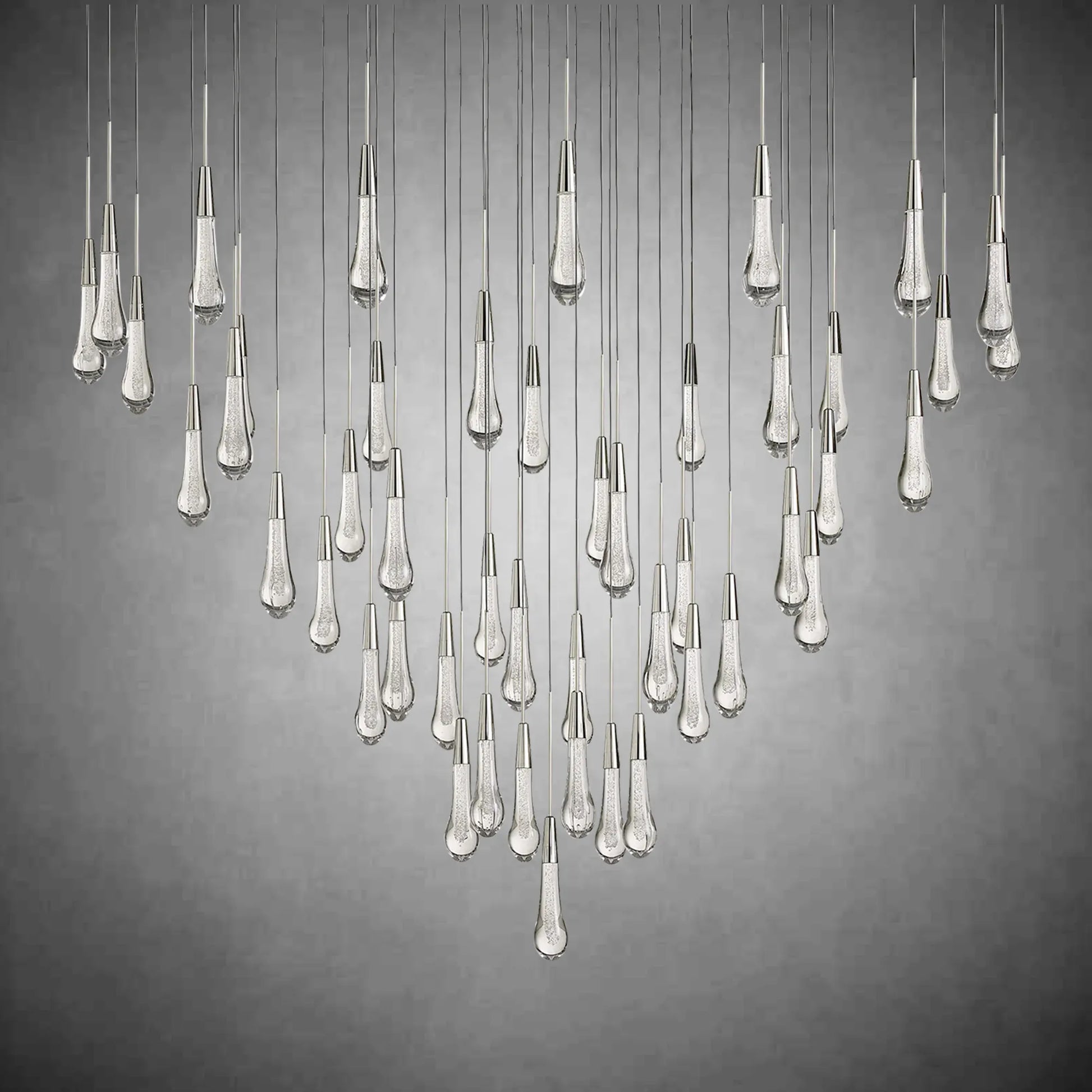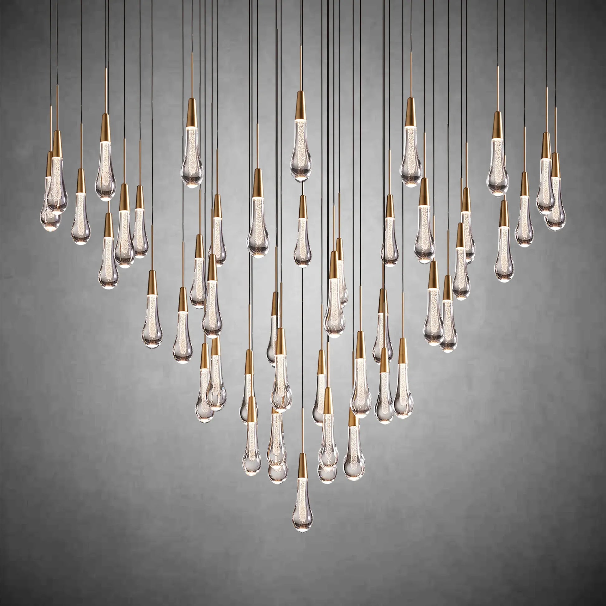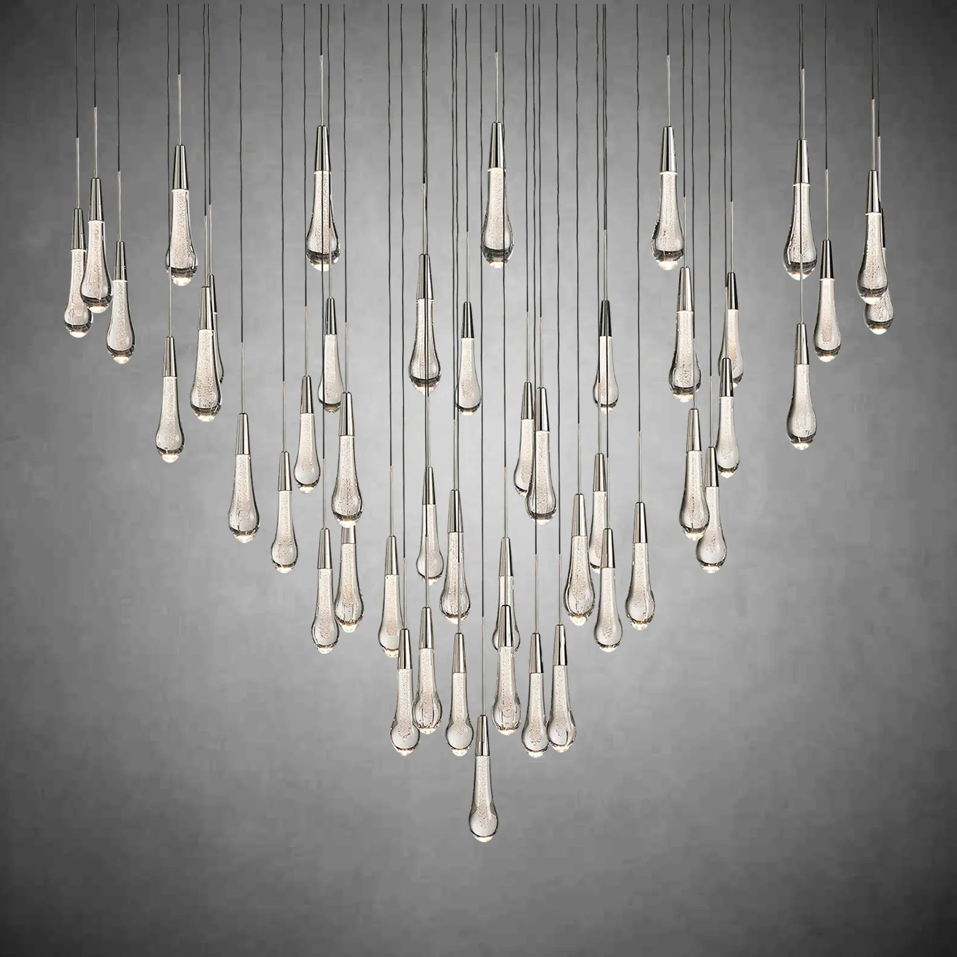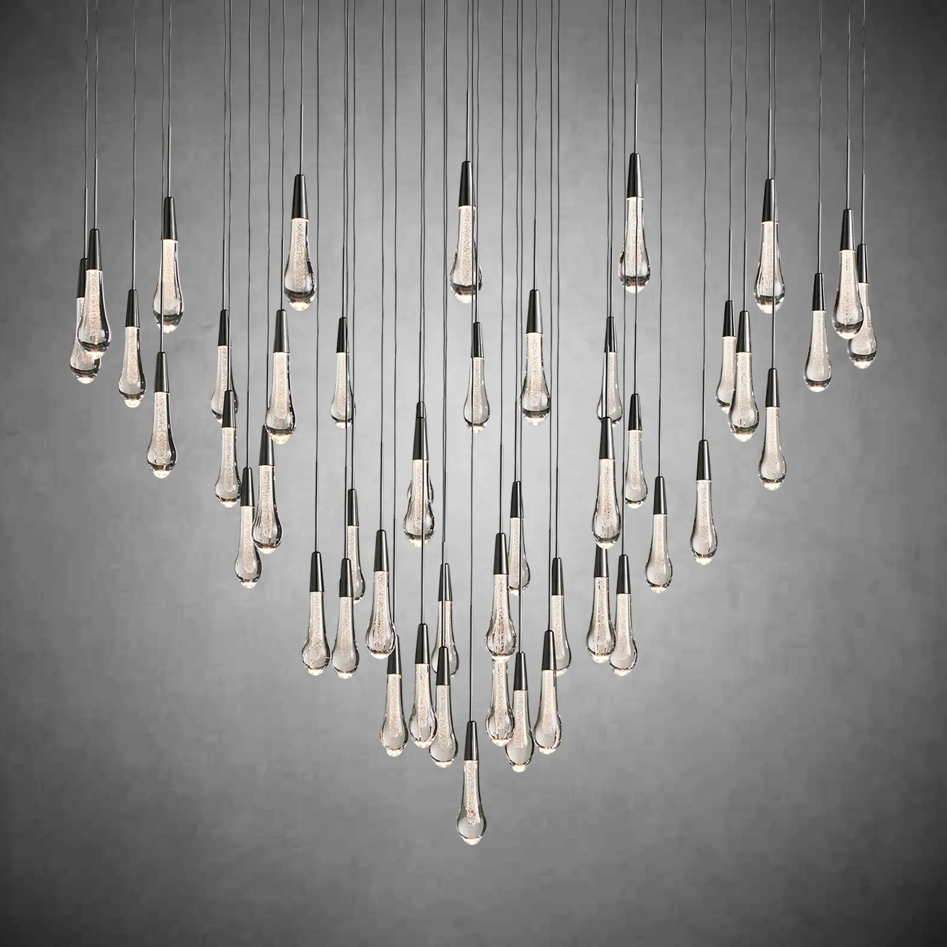 - Featuring adjustable black PVC cords cascading into integrated LED lights handcrafted from seeded glass, our Soltaire Lighting Collection mimics the look of a fallen raindrop.