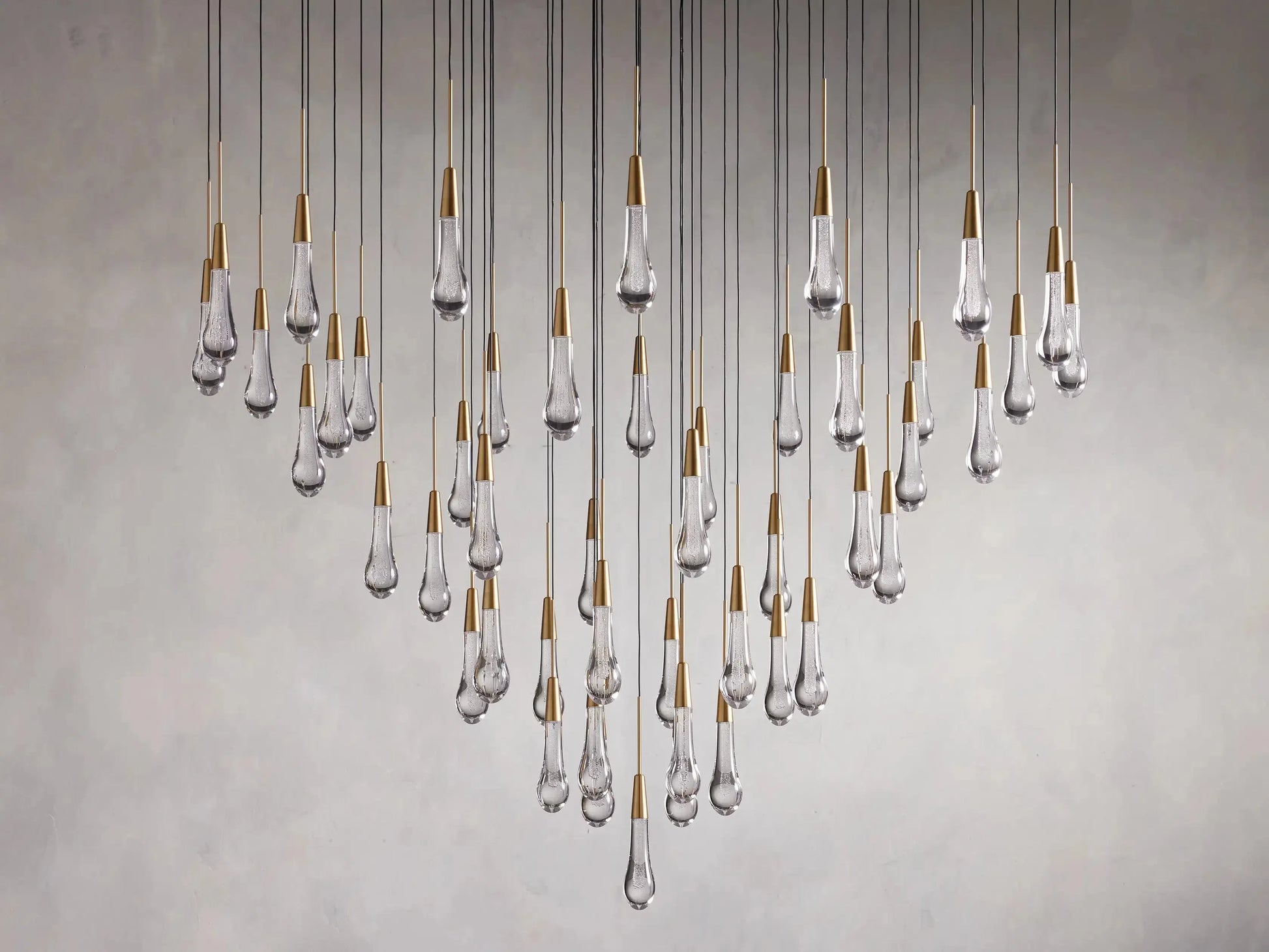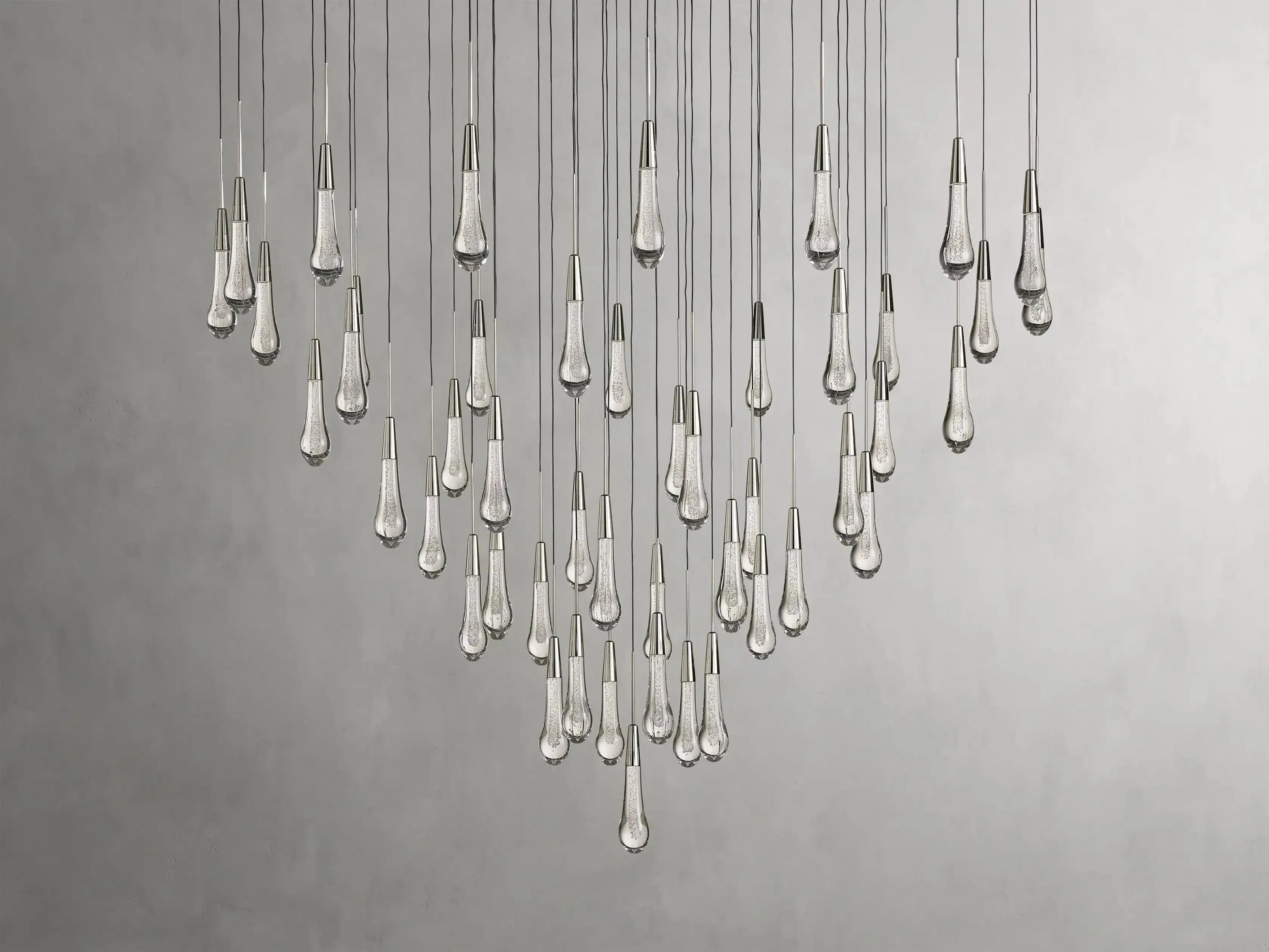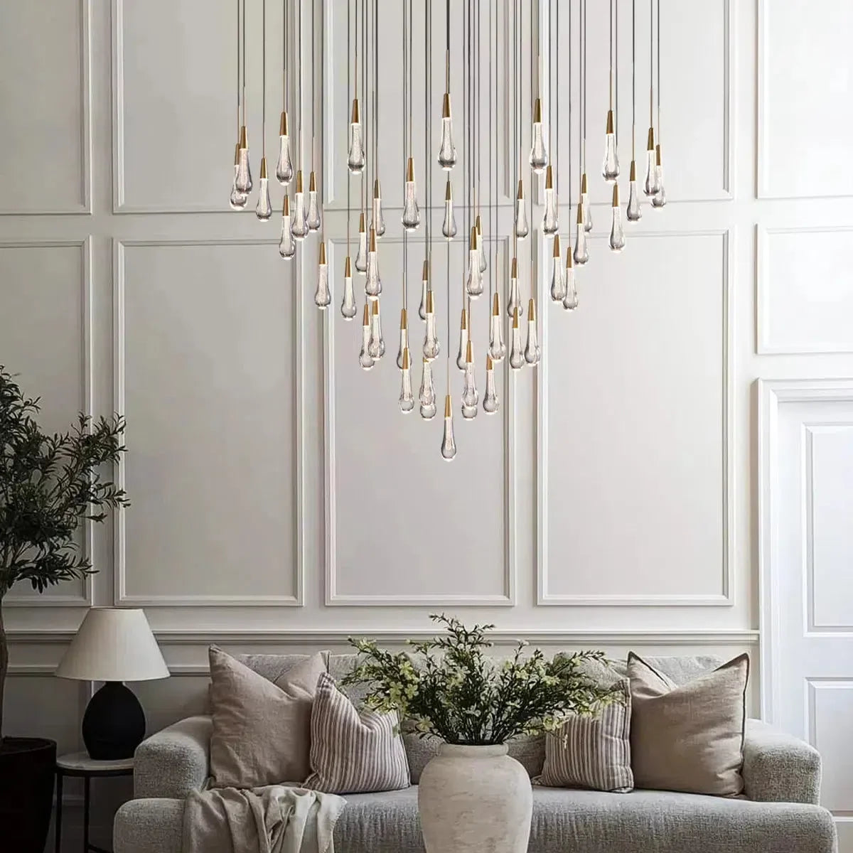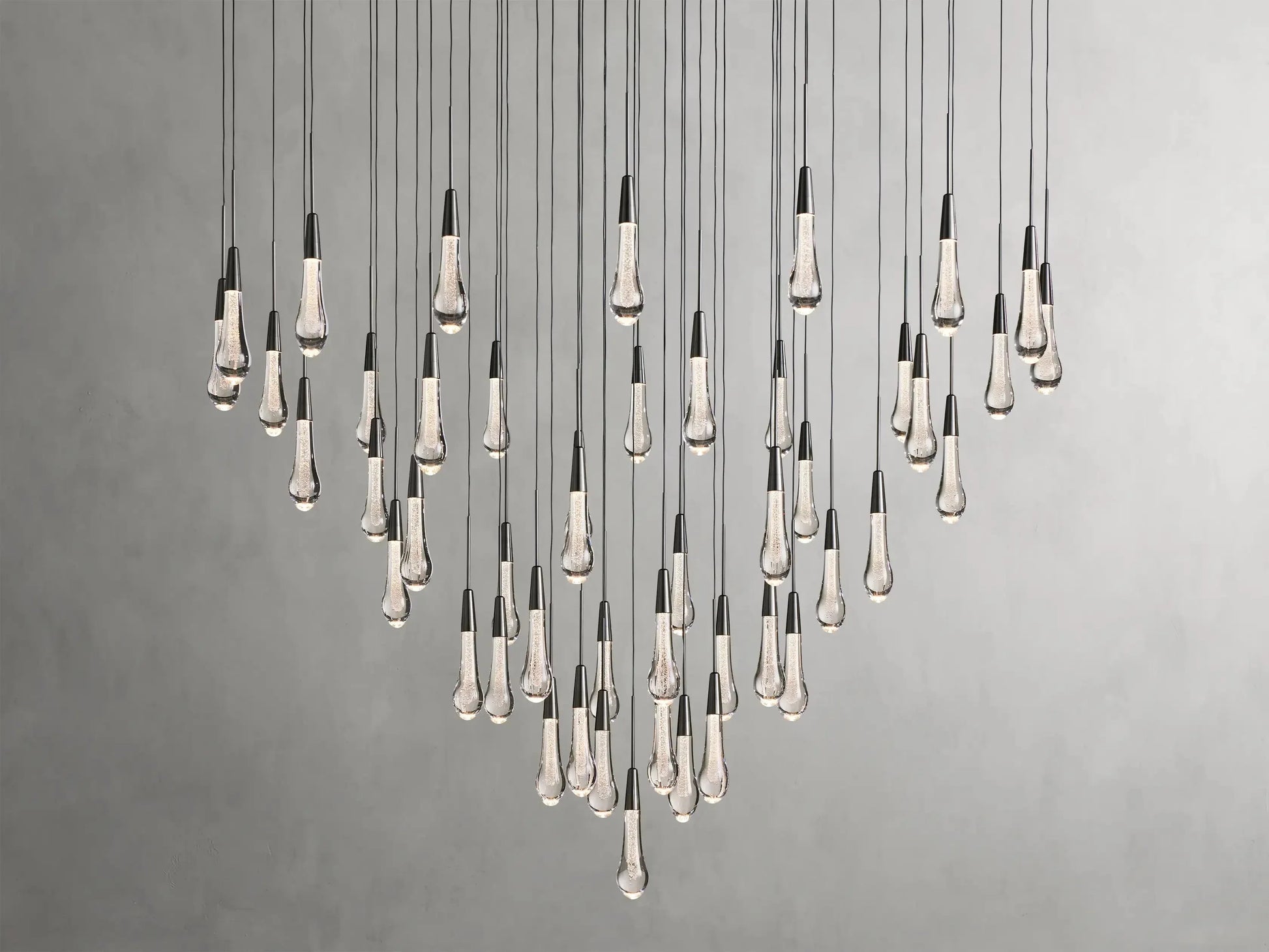 - Featuring adjustable black PVC cords cascading into integrated LED lights handcrafted from seeded glass, our Soltaire Lighting Collection mimics the look of a fallen raindrop.
