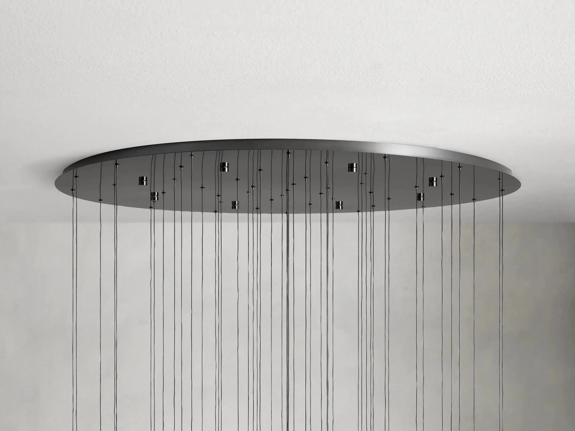 WIDTH 57.5" DEPTH 57.5" HEIGHT 14.5" DIAMETER 57.5" WEIGHT 179.96 LBS NUMBER OF SOCKETS 47 MAXIMUM HANGING DISTANCE 158.5" CANOPY DEPTH 57.5" CANOPY WIDTH 57.5"