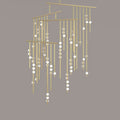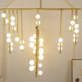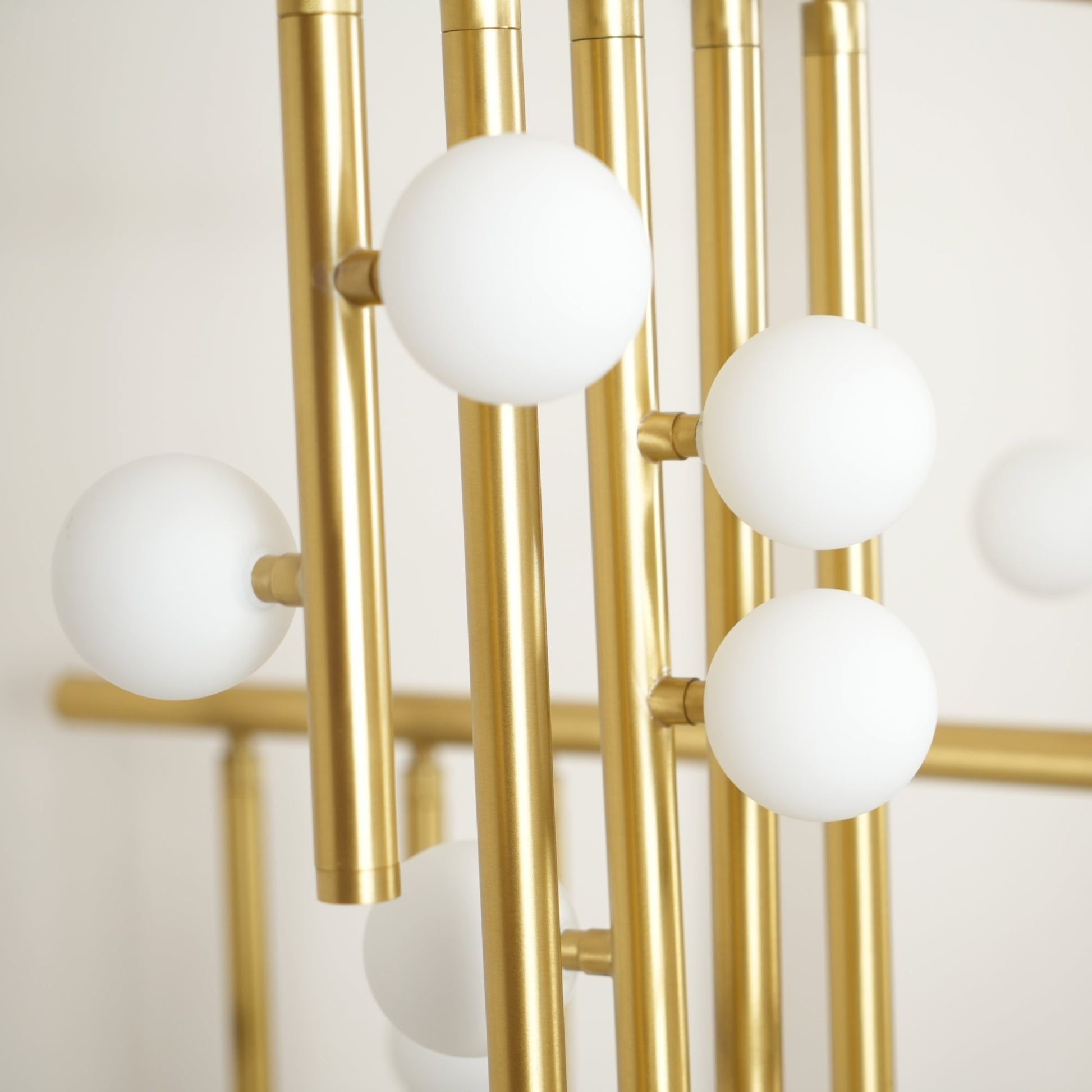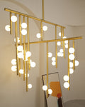 Brass Glass Drop Chandelier is an elegant fusion of form and function, featuring flexible joints that allow its slender rods to gracefully tilt, capturing the essence of organic movement. Adorned with delicate blown glass orbs reminiscent of pearls, and available in finishes like brushed brass and tarnished nickel, this chandelier brings a touch of natural sophistication to any space.